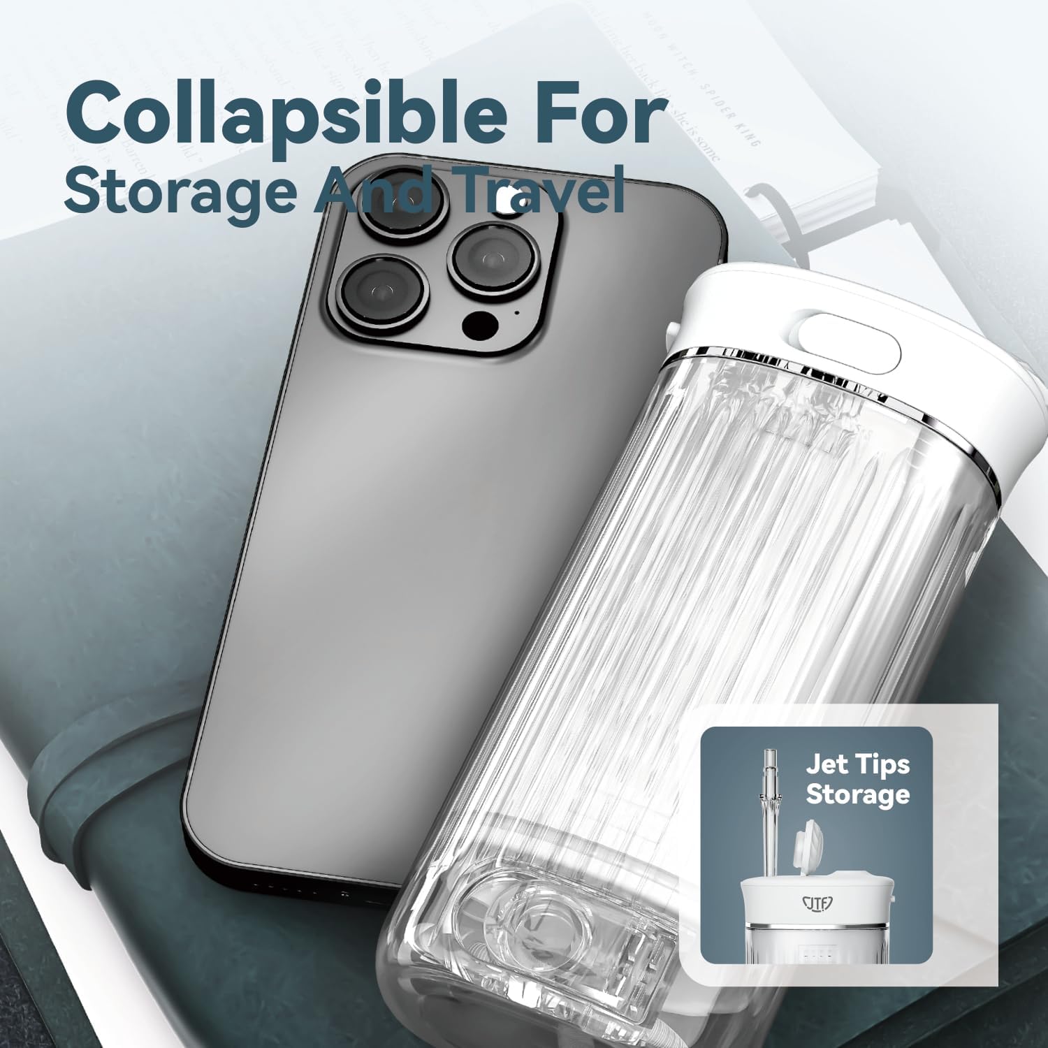 - ใ๐๐จ๐ฆ๐ฉ๐๐๐ญ & ๐๐จ๐ซ๐ญ๐๐๐ฅ๐ ๐๐๐ญ๐๐ซ ๐ ๐ฅ๐จ๐ฌ๐ฌ๐๐ซใJTF portable water flosser features one unique setting with telescopic technology to allows the device to collapse into a smaller size for easy storage in a bag or suitcase when traveling