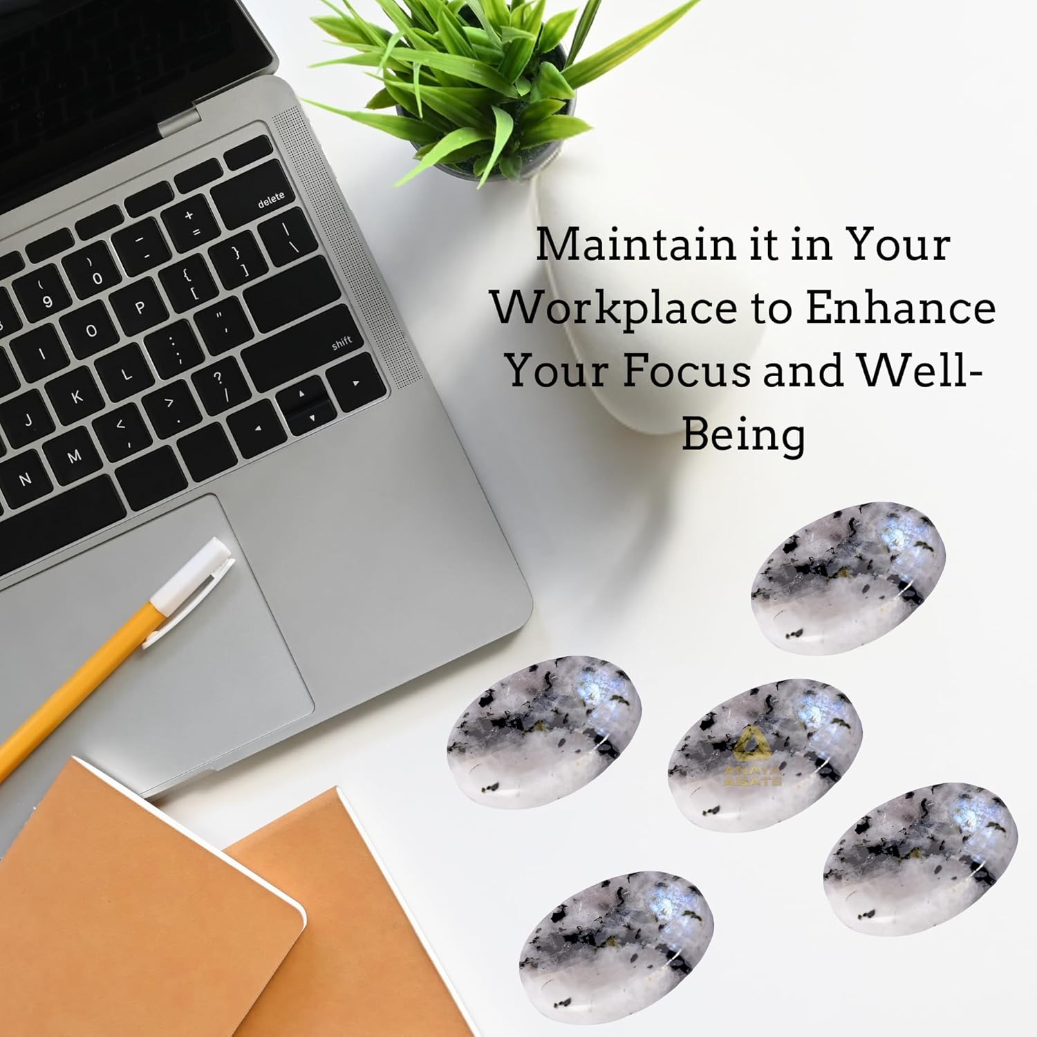 Rainbow Moonstone Worry Stones – Crystal Thumb Worry Stone for Anguish, Stress – Relaxing and Soothing Balance Stones for Meditation, Stress Relief – Healing Stones and Crystals for Men and Women