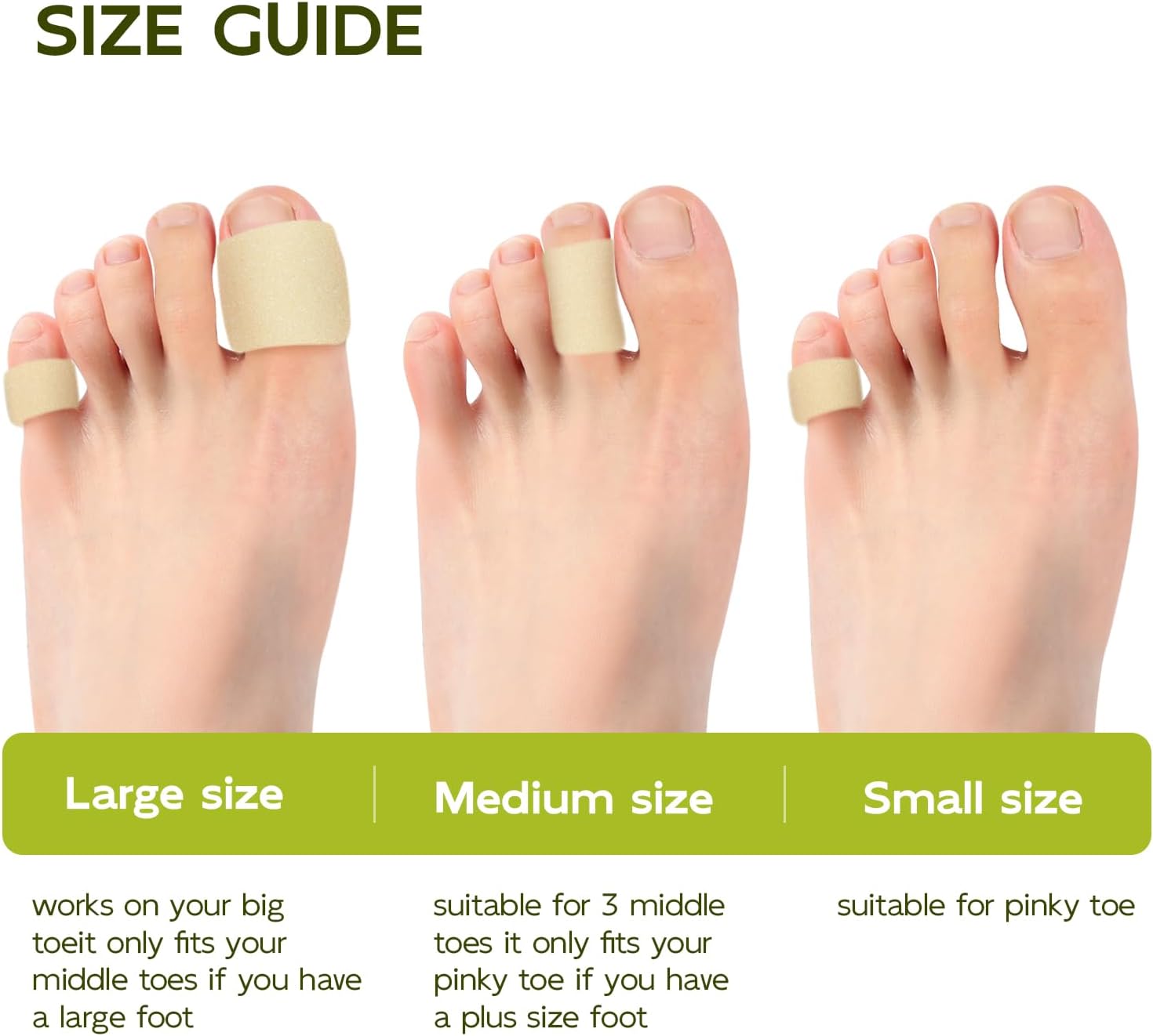 - Reusable and Easy to Clean: Hand wash gently with water and air dry naturally. If sticking occurs, simply apply talcum powder or baby powder to restore the original texture. You will receive a box of 6 Foam Toe Protectors for men and women, including 2 large size, 2 medium size and 2 small for a perfect fit between your toes without friction. The length is 15cm and can be cut to fit on all toes.