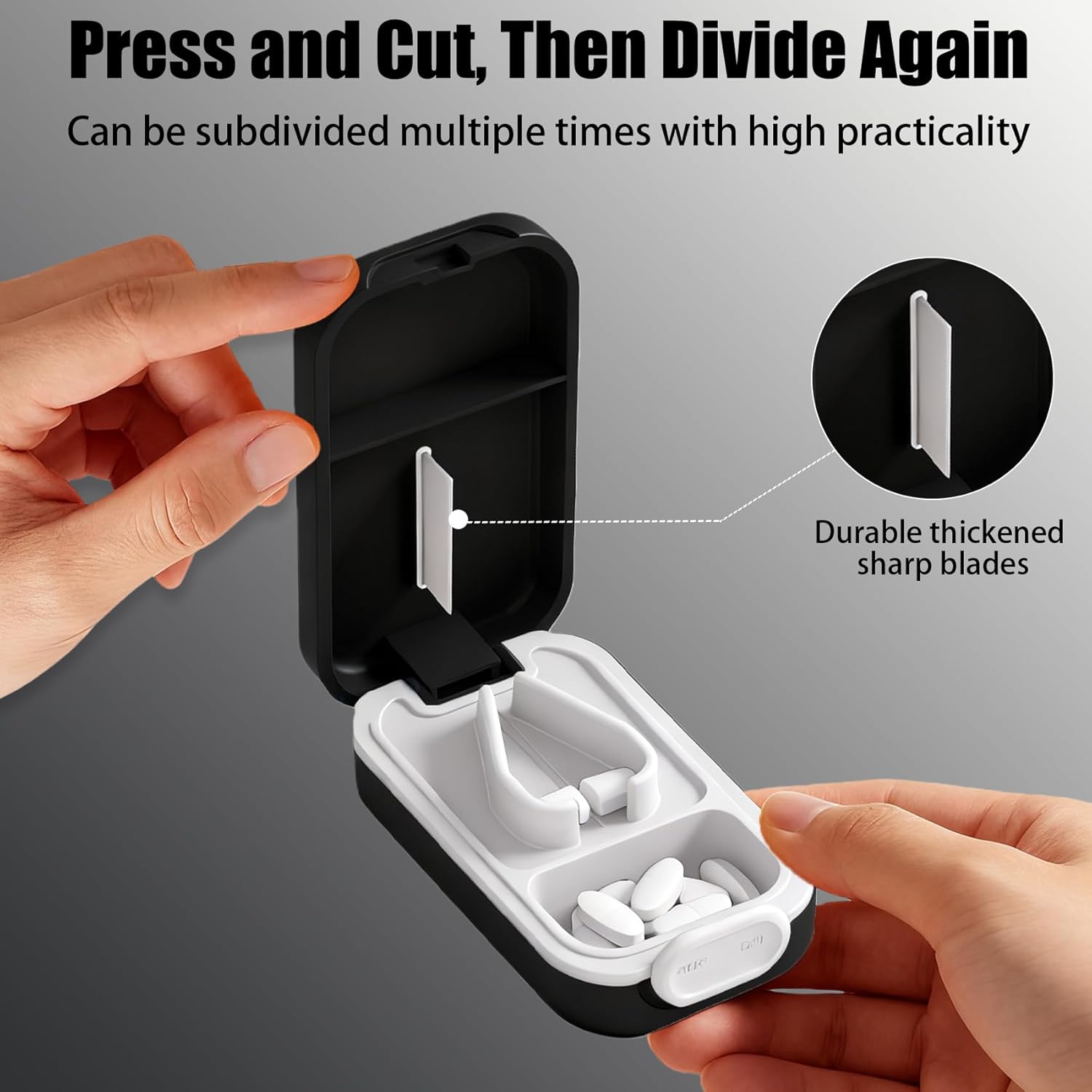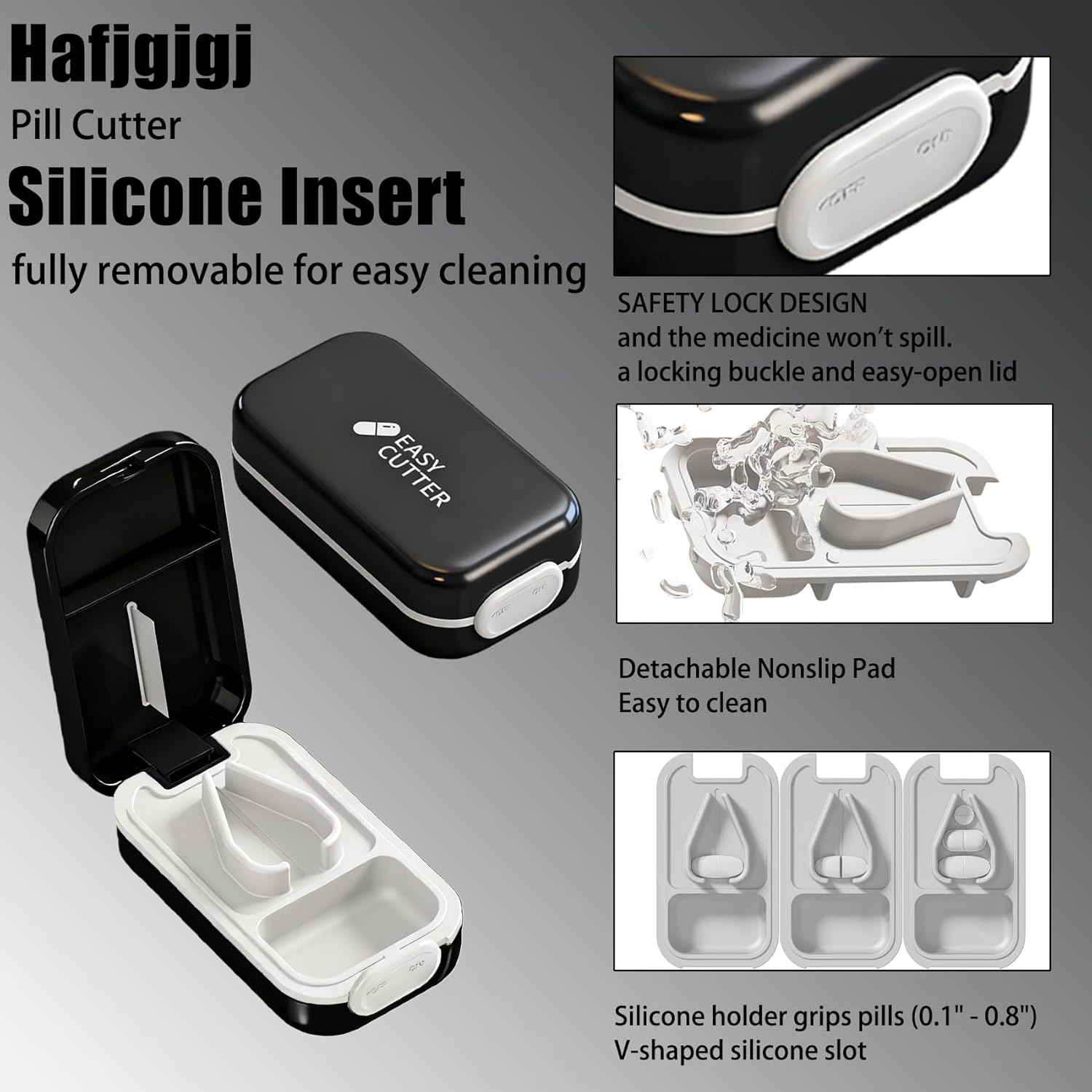 Pill Cutter Splitter for Small or Large Pills with Safety Lock - Accurate and Easy Travel-Friendly Design for Daily Use (Black)