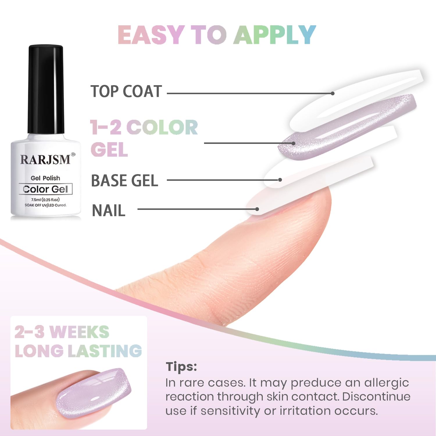 RARJSM Sparkle Diamond Cat Eye Gel Nail Polish Set 6 Colors Nude Pink Milky Jelly Purple Green Blue Silver Glitter Cateye Gel Polish with Magnet Stick UV LED Curing Requires Soak Off Home Salon Diy