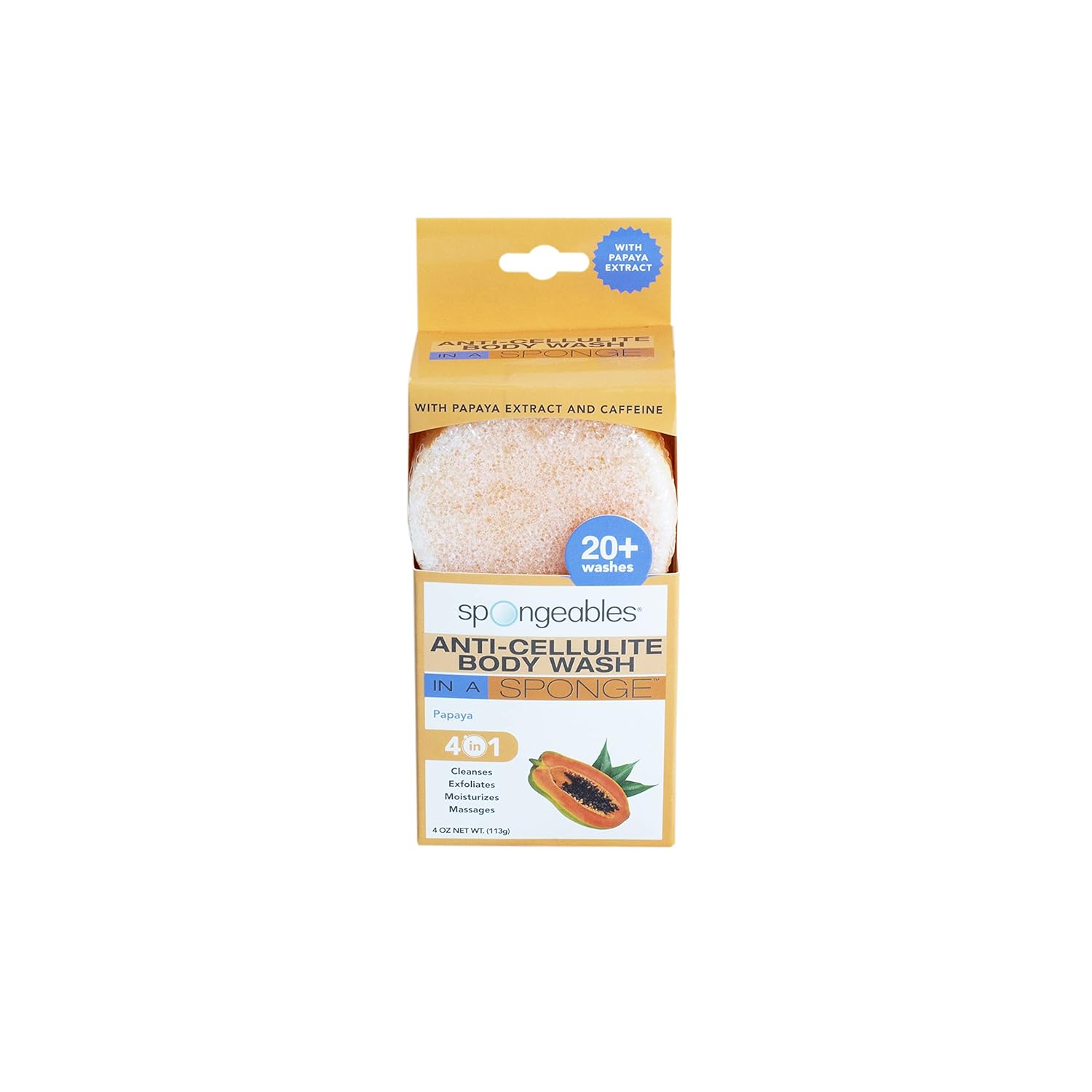 Spongeables Anti Cellulite Body Wash in a 20+ Wash Sponge, Papaya, 3 Count (Pack of 5)