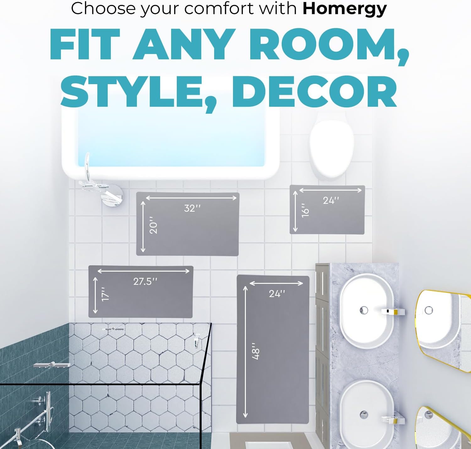 Homergy Bath Mat – Super‑Absorbent & Quick‑Dry with Non‑Slip Rubber Backing, Machine Washable & Odor Resistant – 18x28 in, Gray