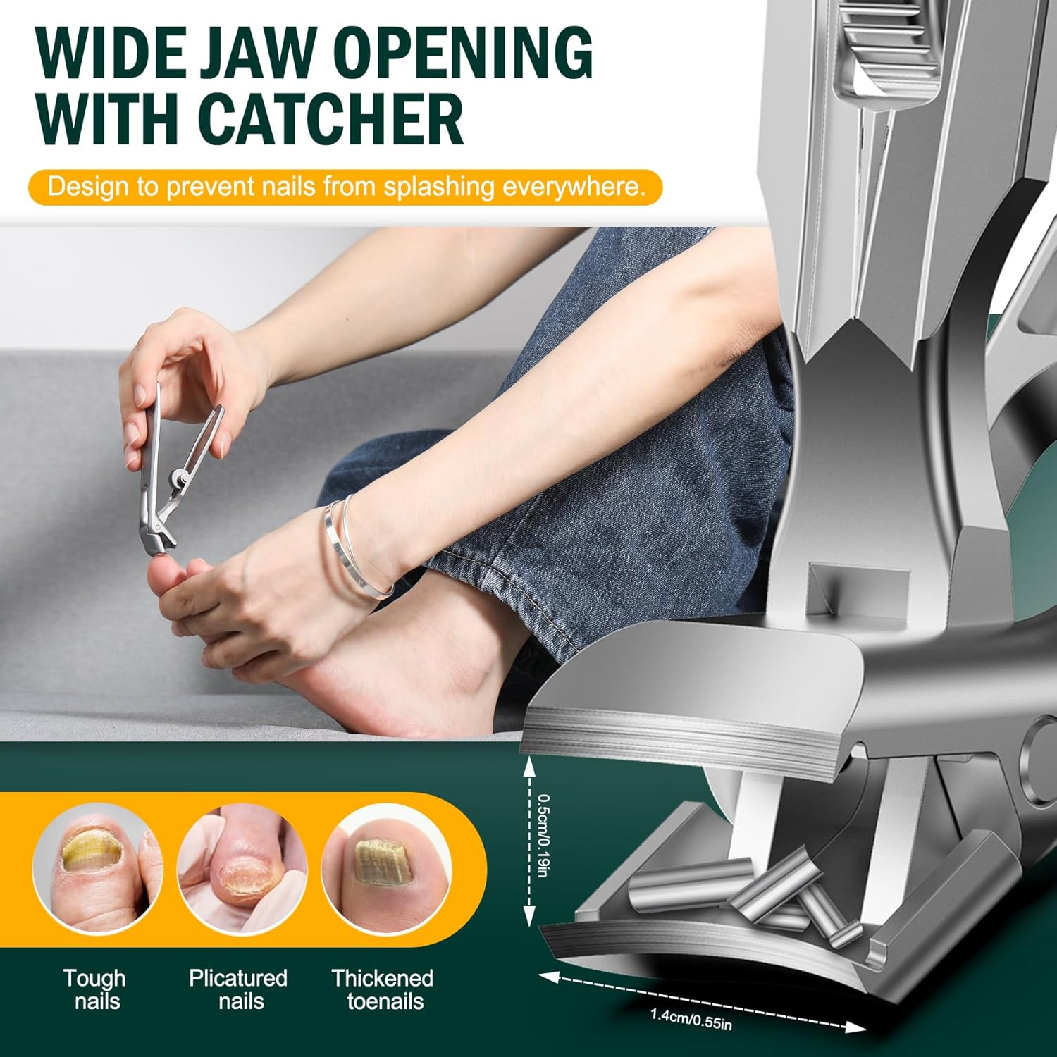 - SAY GOODBYE TO NAIL FLINGING – Ever clipped your nails, only to spend the next 10 minutes hunting for the rogue clippings that shot across the room? Not anymore! FVION long-reach toenail clippers come with a built-in nail catcher that collects every last clipping, keeping things clean and tidy. No more nail surprises hiding in the carpet!