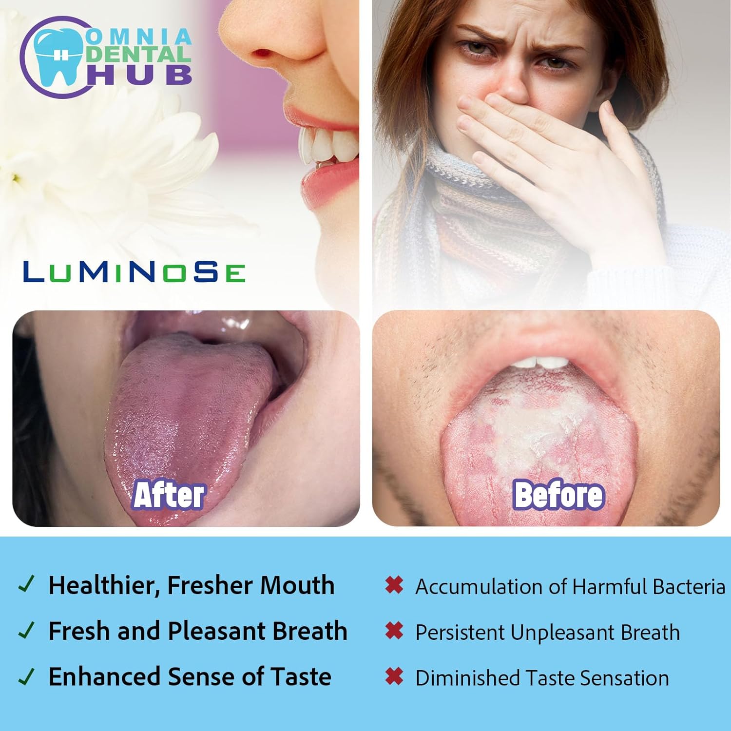 - REDUCE BAD BREATH: Remove food particles, and toxins from your tongue in seconds with our stainless steel tongue scraper. Regular use helps reduce bad breath, enhances taste, and boosts overall oral hygiene, leaving your mouth feeling fresher and your dental health improved after every use.