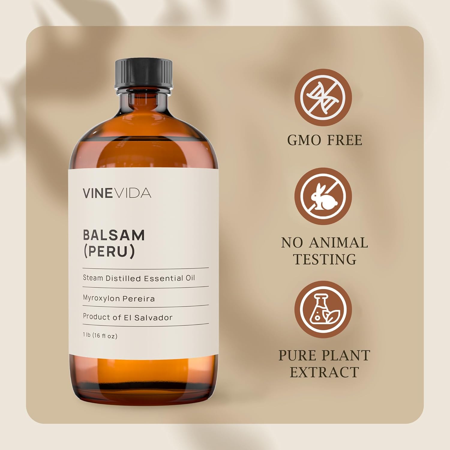 VINEVIDA Balsam Peru Essential Oil 16 oz - Undiluted for Candle Making and Soap Making - DIY Candle Scents - Safe for Skin