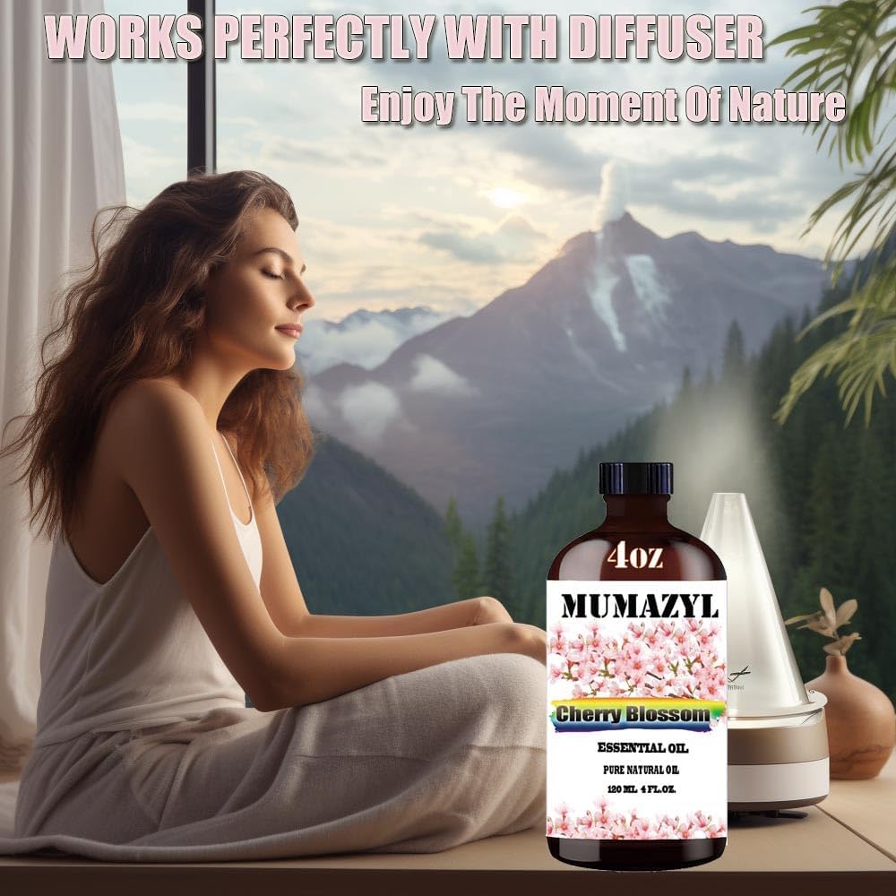 Cherry Blossom Essential Oil, Cherry Blossom Oil 4 Fl Oz 120ML for Diffuser Humidifier Yoga Cleaning DIY Candle Soap Making Essential Oils