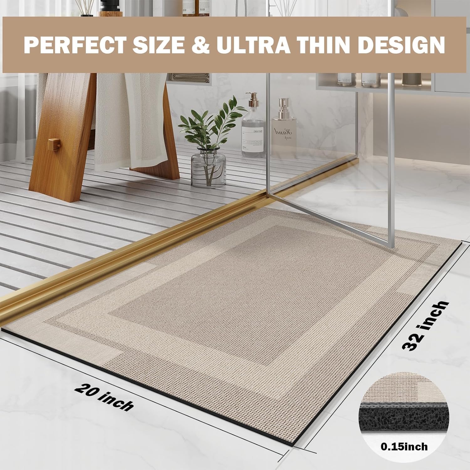 Non Slip Bath Mat, Rubber Backing Ultra Thin Bathroom Rugs Fit Under Door Quick Dry Super Absorbent Washable Bath Rug Shower Mat for Bathroom Floor Bathtub Shower Sink, Easy Care Beige 20"x 32"