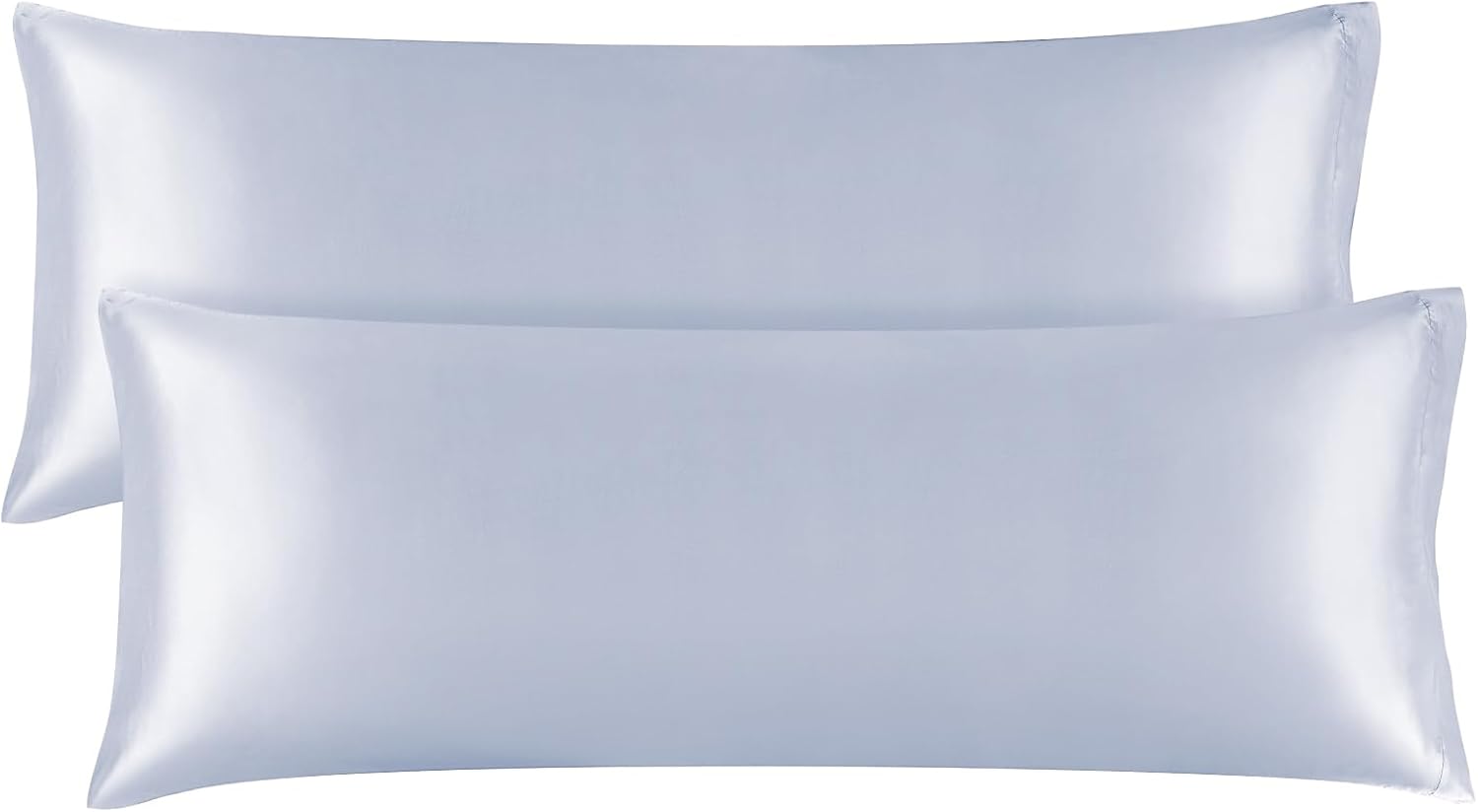BEDELITE Satin Body Pillow Cover 2 Pack, Super Soft and Cooling Body Pillow Pillowcase for Hair and Skin, Breathable Silky Full Long Pillowcase Cover(20"x54", Evening Haze)