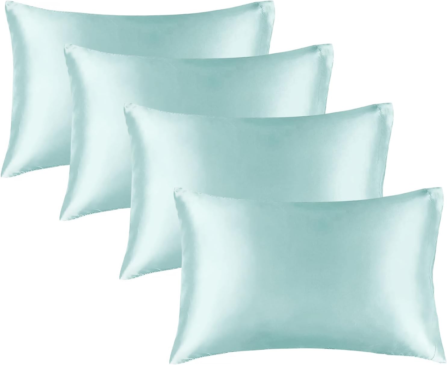 BEDELITE Satin Pillowcase for Hair and Skin, Super Soft Similar to Silk Pillow Cases 4 Pack with Envelope Closure, Cooling Pillowcases for Women Men (20"x40" King Size, Blue Grey)