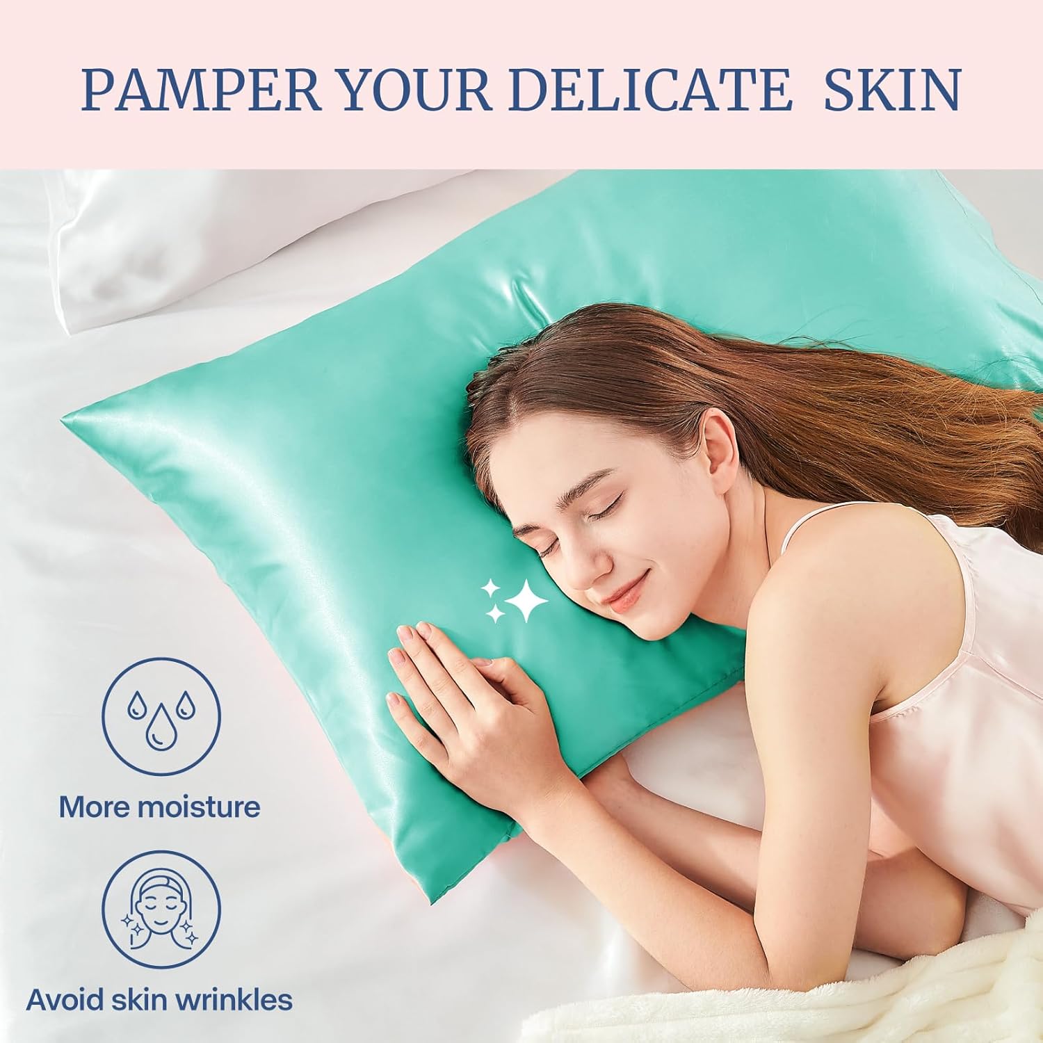 BEDELITE Satin Pillowcase for Hair and Skin, Super Soft Similar to Silk Pillow Cases 4 Pack with Envelope Closure, Cooling Pillowcases for Women Men (20"x30" Queen Size, Turquoise)