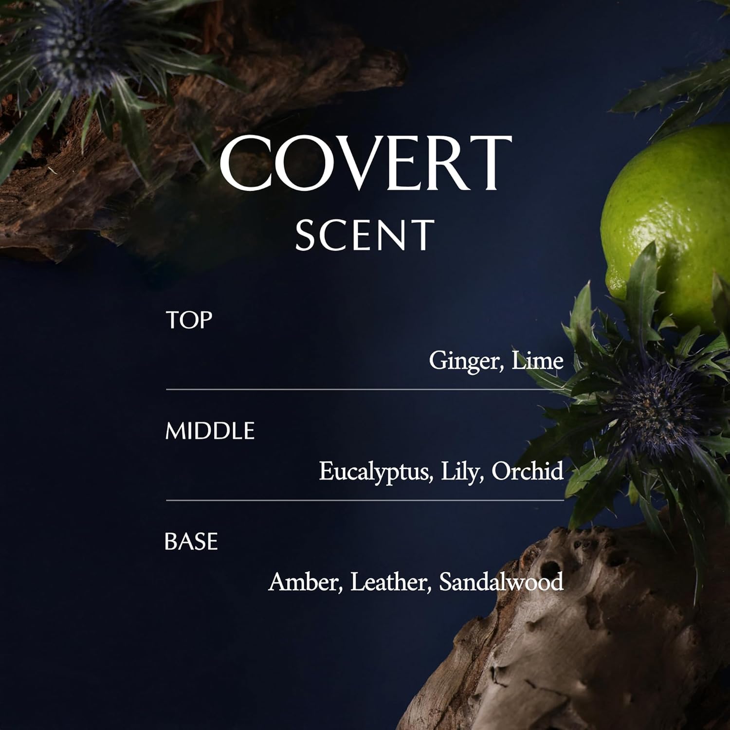 - 1.🌳 COVERT SCENT_DEEP WOODY AMBER: A deep floral musk with intense woody amber notes. The spicy vibrancy of ginger and lime adds a fresh edge, balanced by lush floral notes, musk, and amber for a sensual and longlasting impression.