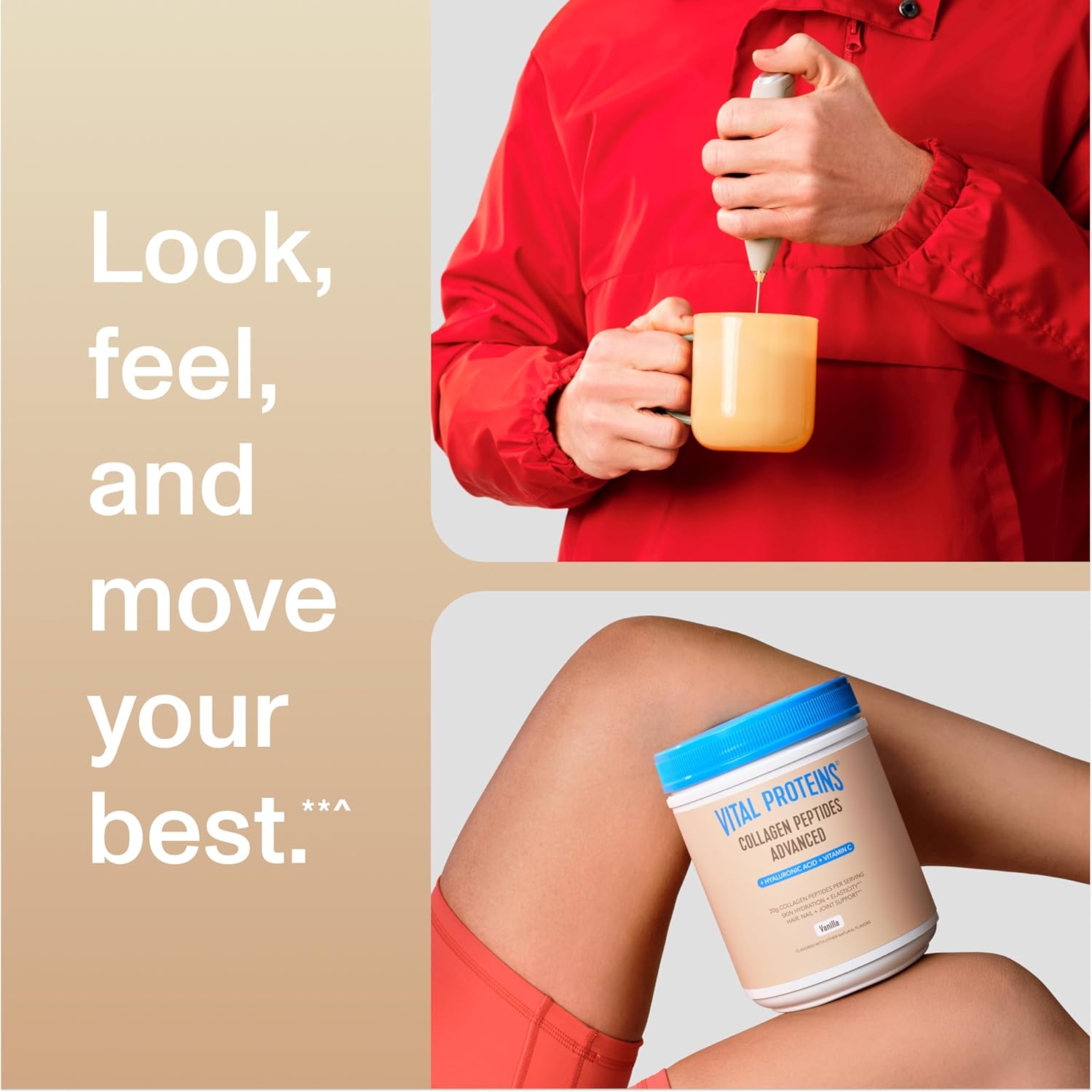 - Collagen Peptides: Helps support healthy hair, skin, nails, bones and joints**^ β