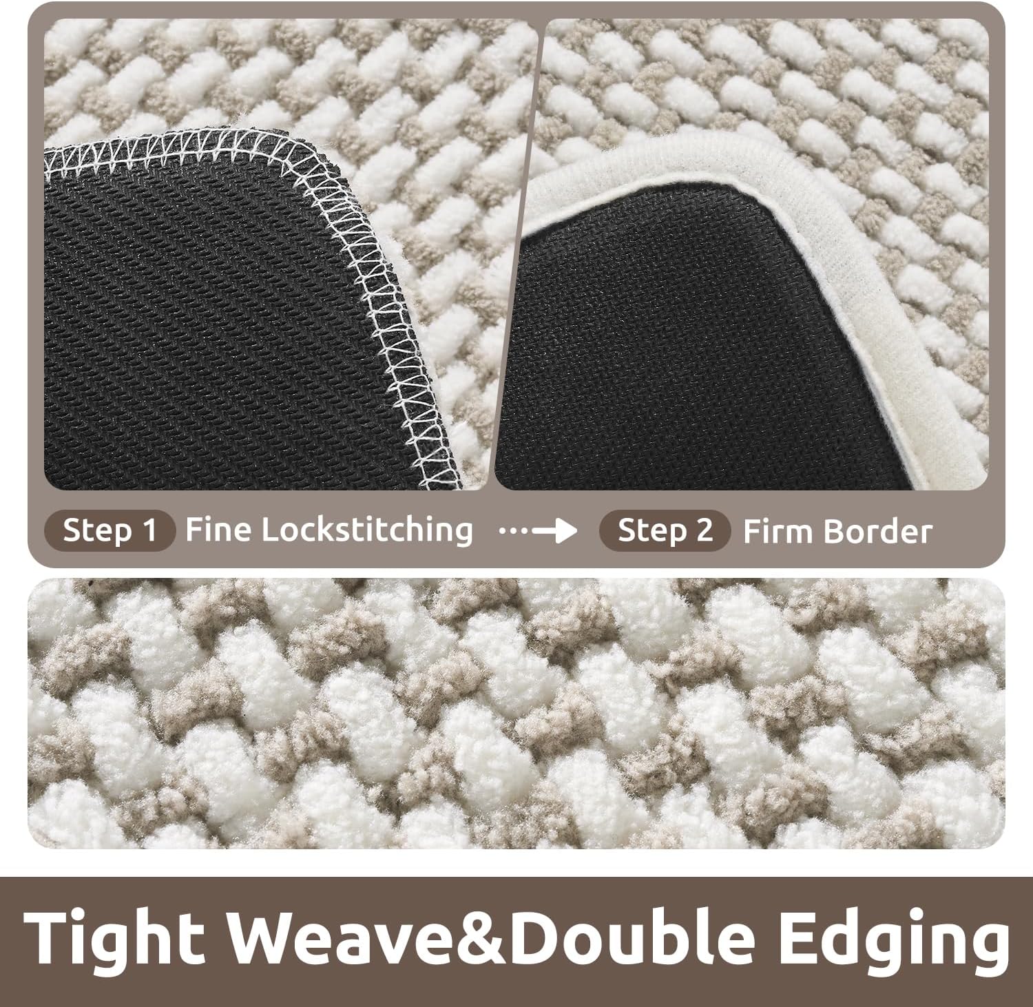 AMOAMI Chenille Bath Mat Super Absorbent Bathroom Mat Quick Dry Low Pile Bath Mats for Bathroom Washable Rubber Backed Bathroom Runners Fit Under Door, Front of Bathtub, Sink, Beige&White 17"x59"
