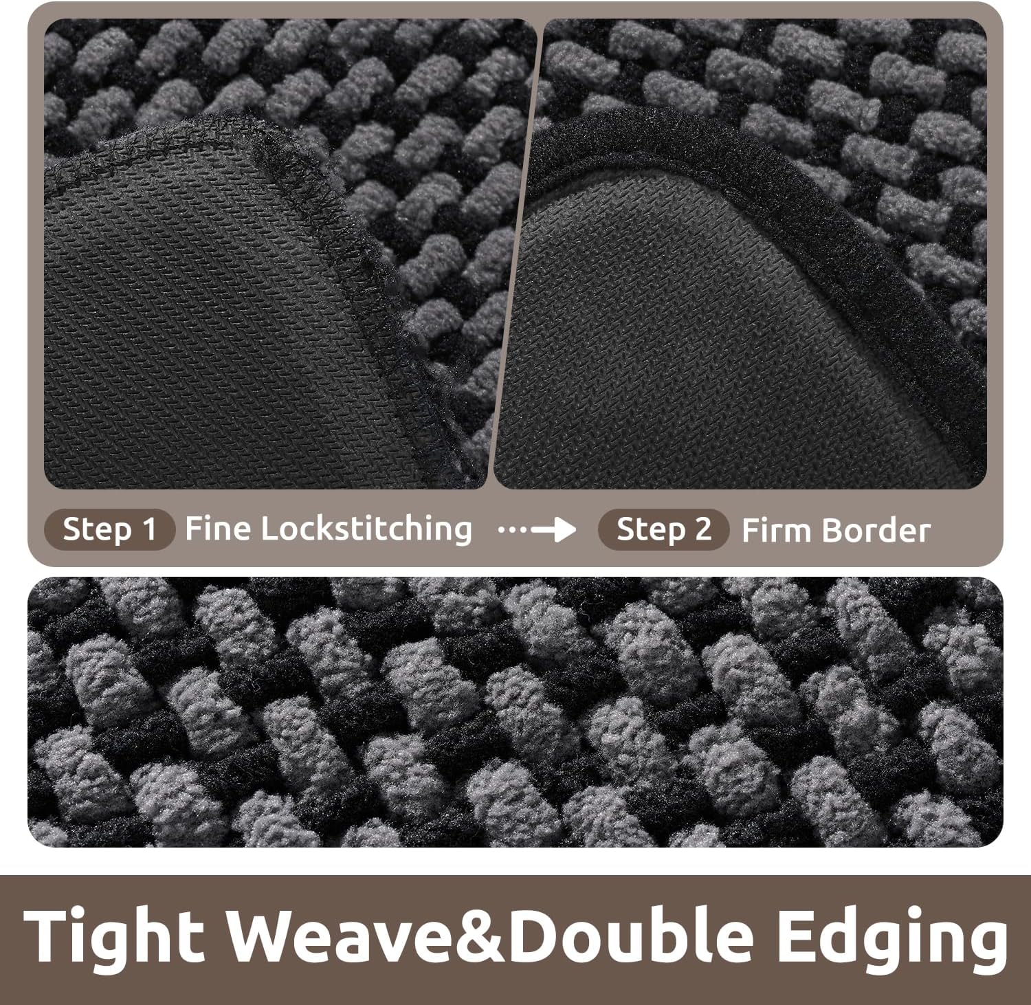- [Update Double Edge & Color] Tightly woven bathroom rugs with double locking edge process makes bath mats more stable, not easily dispersed, more robust than most of others chenile bathroom mats. Stylish two-color design versatile, chenille bath rugs make your feet feel relaxed. Integrated design of surface and backing prevents shedding and deformation.