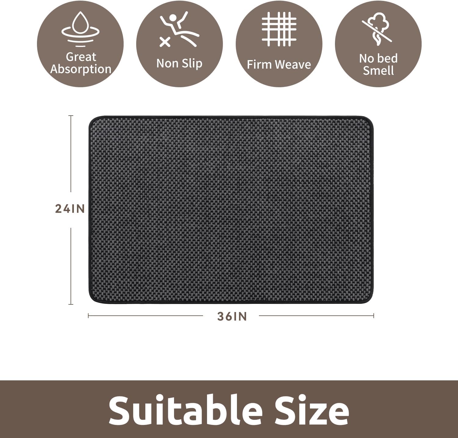 - [Super Absorbency] Tightly woven non slip bath mat with premium material quickly absorbs water keep floors dry and clean. Breathable structure makes dry quickly. Ideal bathroom floor mat for daily use, it helps maintain a clean, comfortable, and slip-free environment.
