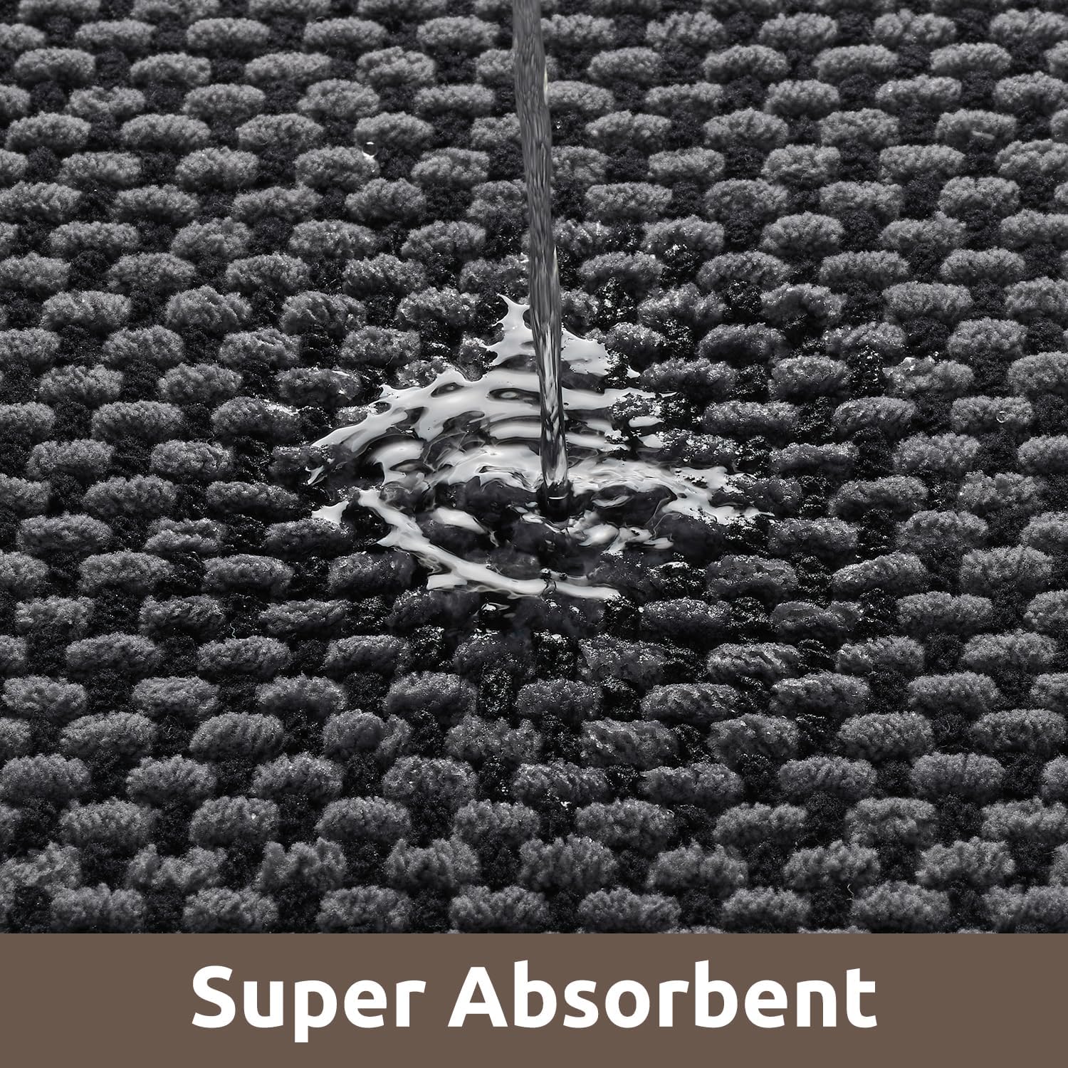 - [Non-Slip Backing] Rubber backed absorbent bath mat stays firmly in place and will not slip, thus reducing the risk of falling, especially suitable for the elderly and children. Chenille bathroom rugs backing also prevents water from leaking onto the floor, keeping bath mat non slip clean and dry.