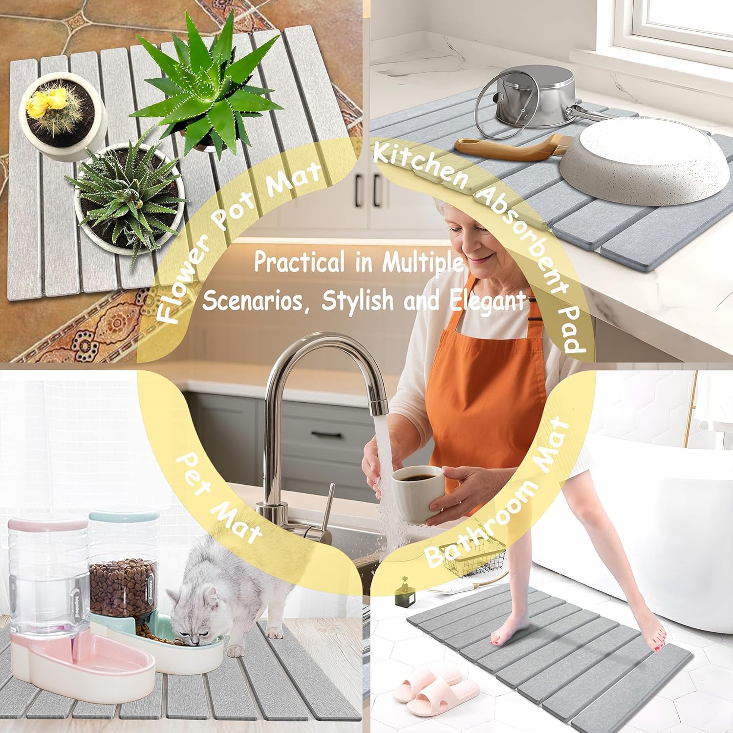 - Super Absorbent & Fast Drying: Our stone dish drying mat instantly absorbs pools of water with exceptional power, keeping countertops completely dry. This quick dry stone mat kitchen essential eliminates dampness in minutes - no more water spots on dishes or your kitchen counter