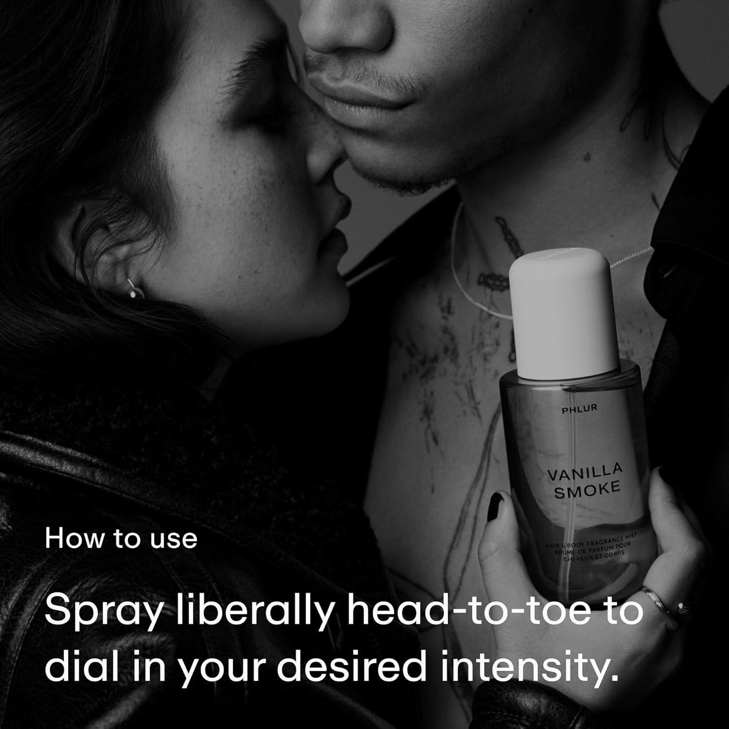 PHLUR Vanilla Smoke Body Mist - Hair and Body Fragrance Mist - Cashmere Vanilla Body Spray with Pink Pepper, Bergamot, Tonka Bean & Incense (8 Fl Oz)
