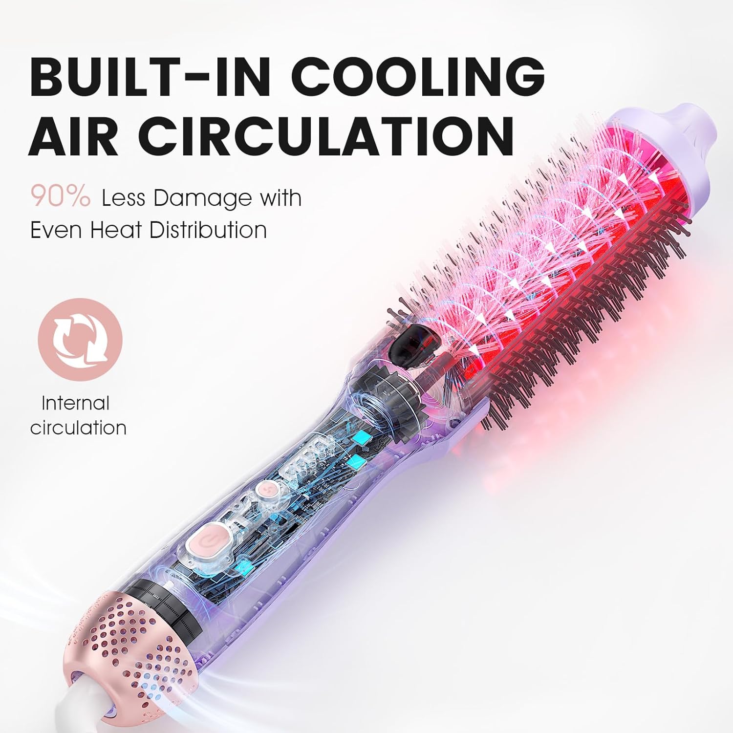- BUILT-IN COOLING AIR CIRCULATION: With unique built-in cooling air circulation, this thermal round brush allows for a great deal of heat to be evenly distributed across the heating tubes, allowing for the best styling results while avoiding the concentration of heat that can cause burns to the hair. In just 10 minutes, you can feel the salon-quality hair protection and styling experience!