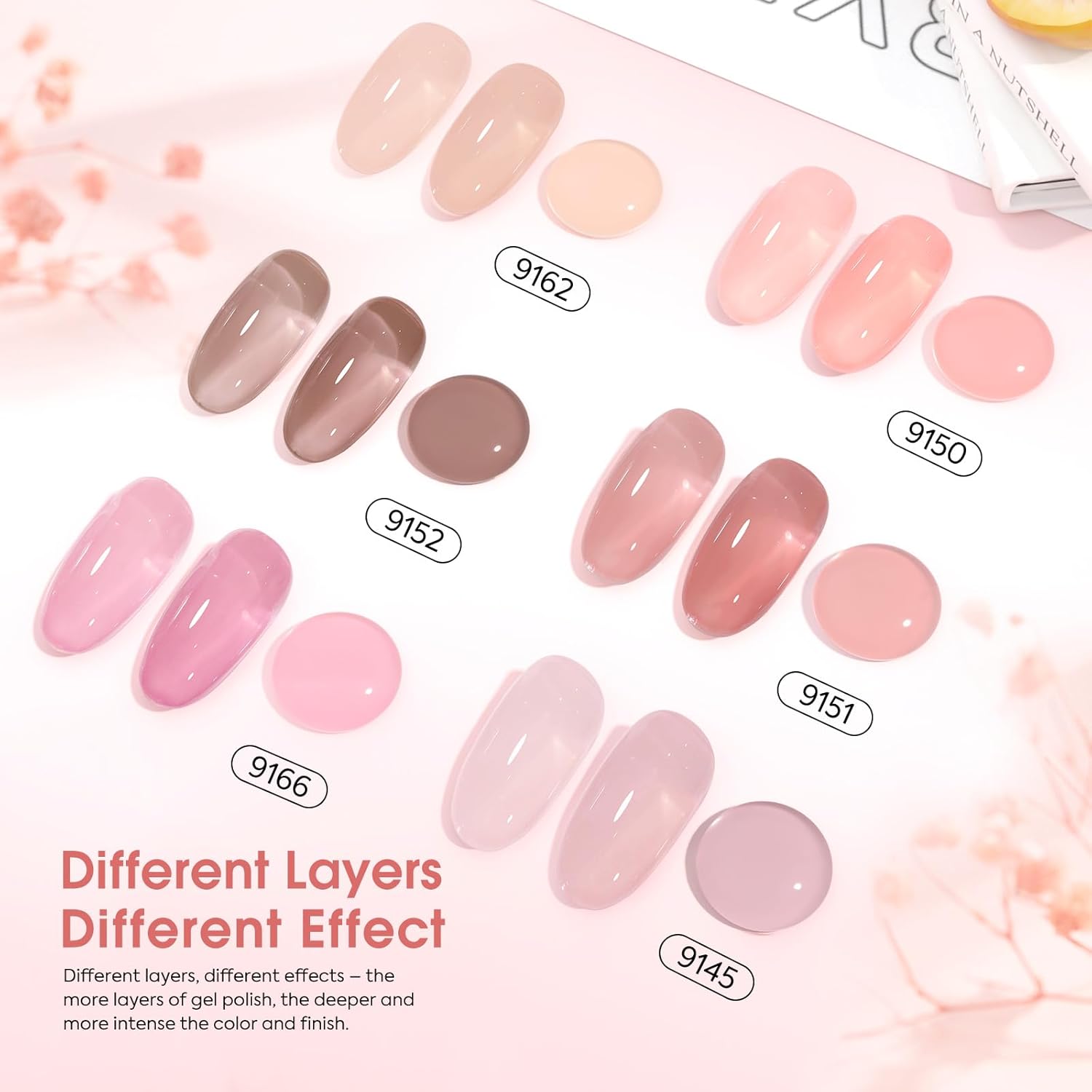 CANNI 6 Colors 9 Ml Sheer Jelly Pink Gel Nail Polish Set- Neutral Transparent Pink Colors Gel Polish Kit, Soak Off LED Nail Gel Manicure Kit DIY at Home Salon Gifts