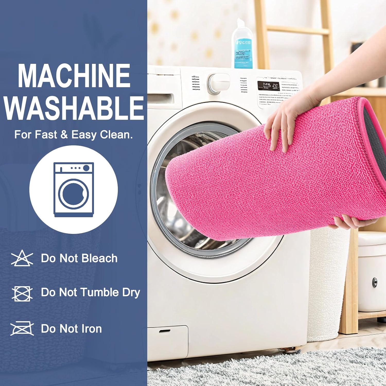 - [Easy to Clean & Care] Our bathroom mats are machine washable. Simply place the mats in the washer using cold water on the gentle cycle. Do not use chlorine or bleach. Tumble dry on low heat or lay to air dry. The color of the bath mats will not fade.