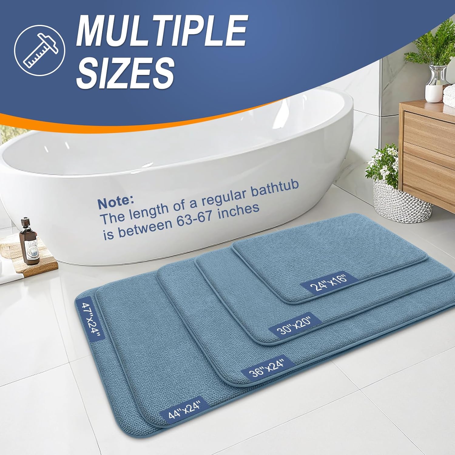 OLANLY Thick Memory Foam Bath Mat Rug 47x17, Extra Soft Absorbent Bathroom Rug, Quick Dry Bath Mats, Non-Slip, Machine Washable Carpet for Bathroom, Tub and Shower, Home Decor Accessories, Airy Blue