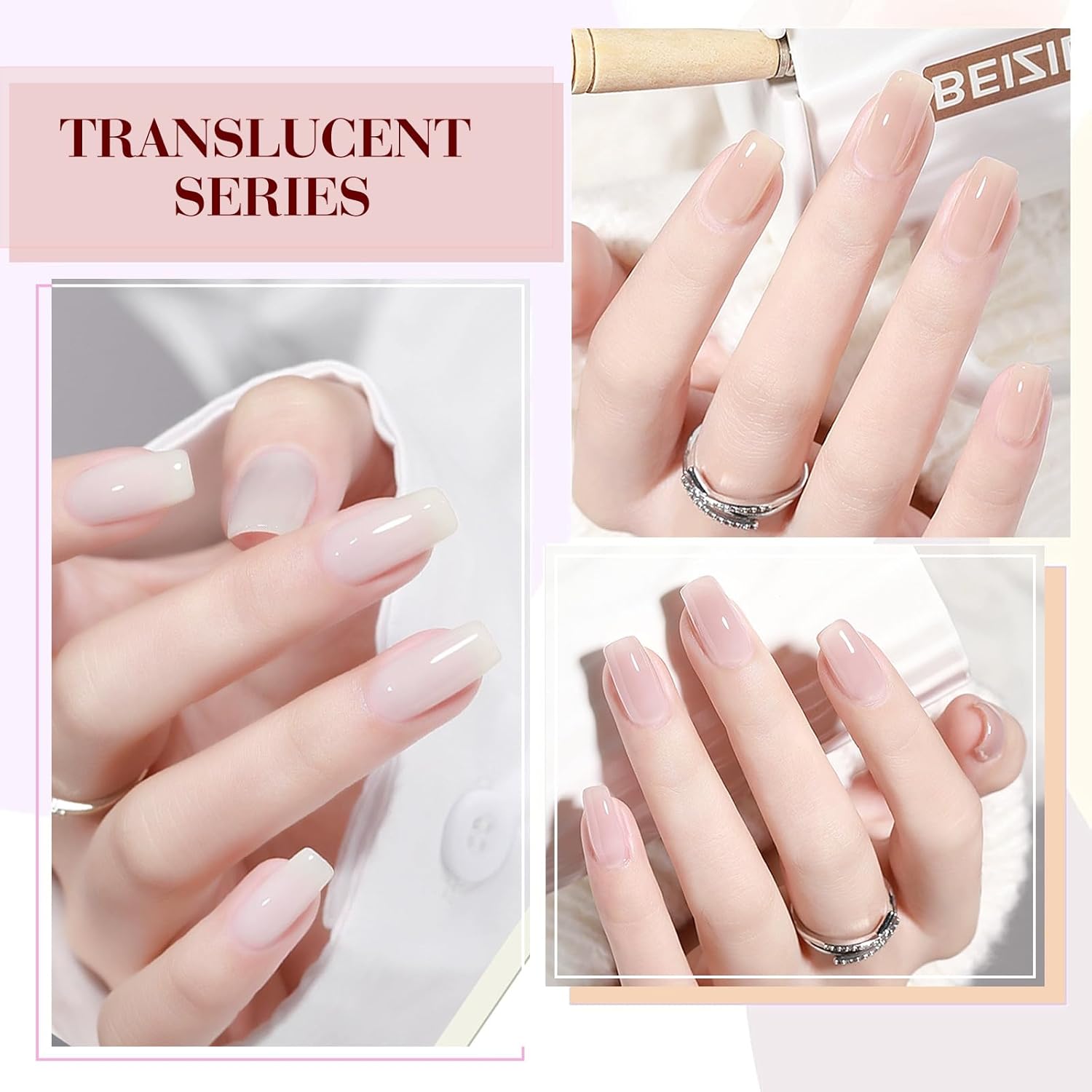 CANNI Jelly Nude Pink Gel Nail Polish Set- 6 Pcs 9 Ml Neutral Transparent Milky White Colors Gel Polish Kit, Soak Off LED Nail Gel Manicure Kit DIY at Home Salon Gifts