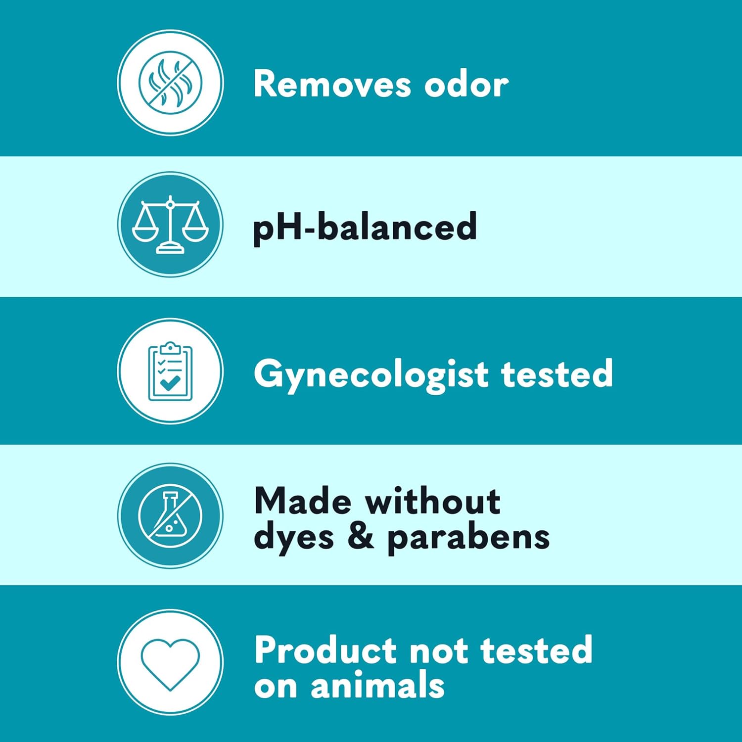 - GYNECOLOGIST-TESTED: Safe for daily use, this pH-balanced feminine wash is free from dyes and parabens and never tested on animals