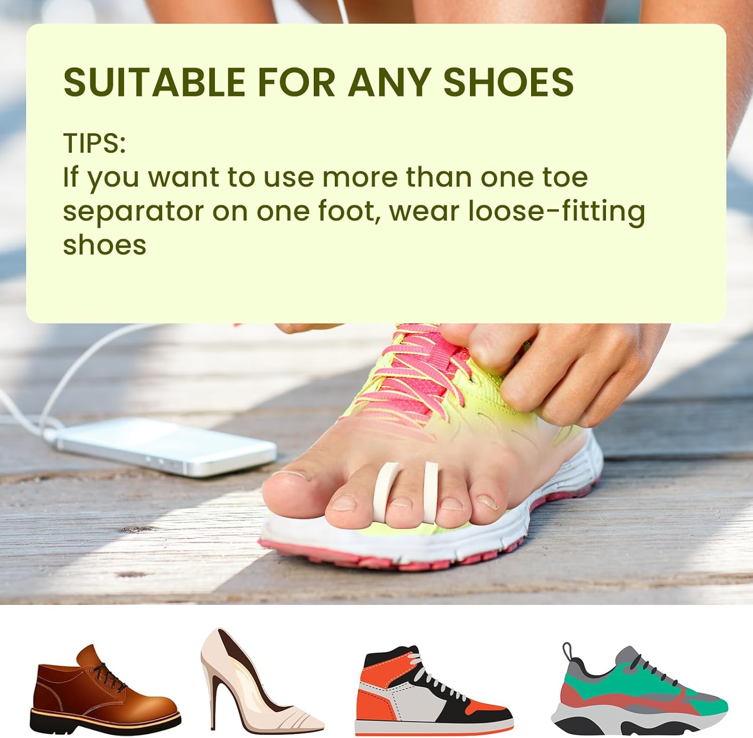 - Ergonomic Fit: Designed to fit snugly between toes, these spacers ensure secure placement, especially for the big toe. Suitable for most footwear types and adaptable for both men and women