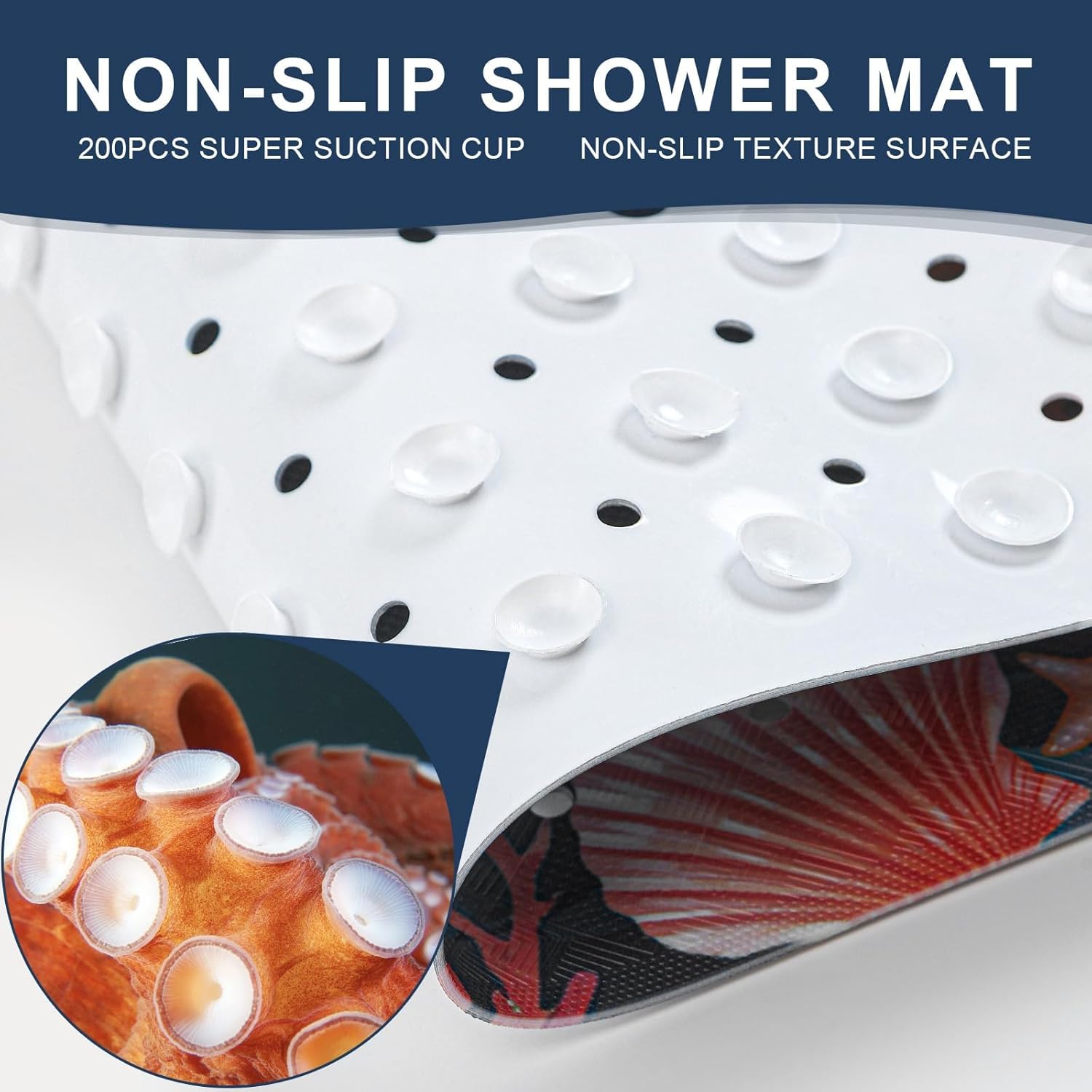 - ✅【Non-Slip & Full Protectation Kids Shower Mat】 Our toddler bath mat non-slip for tub features 200 strong suction cups for a secure hold and a textured surface without raised bubbles, offering extra grip and comfort for your child. 40x16 inches extra-long size ensures full coverage, providing complete protection for your family