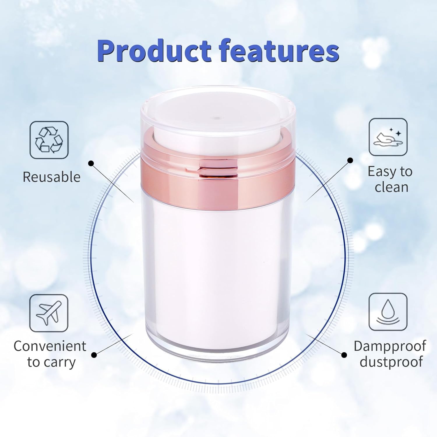 - Durable Material: The airless pump jars are made of acrylic, silicone, plastic material, durable and lightweight, leak proof and spill proof, reusable and convenient to carry.