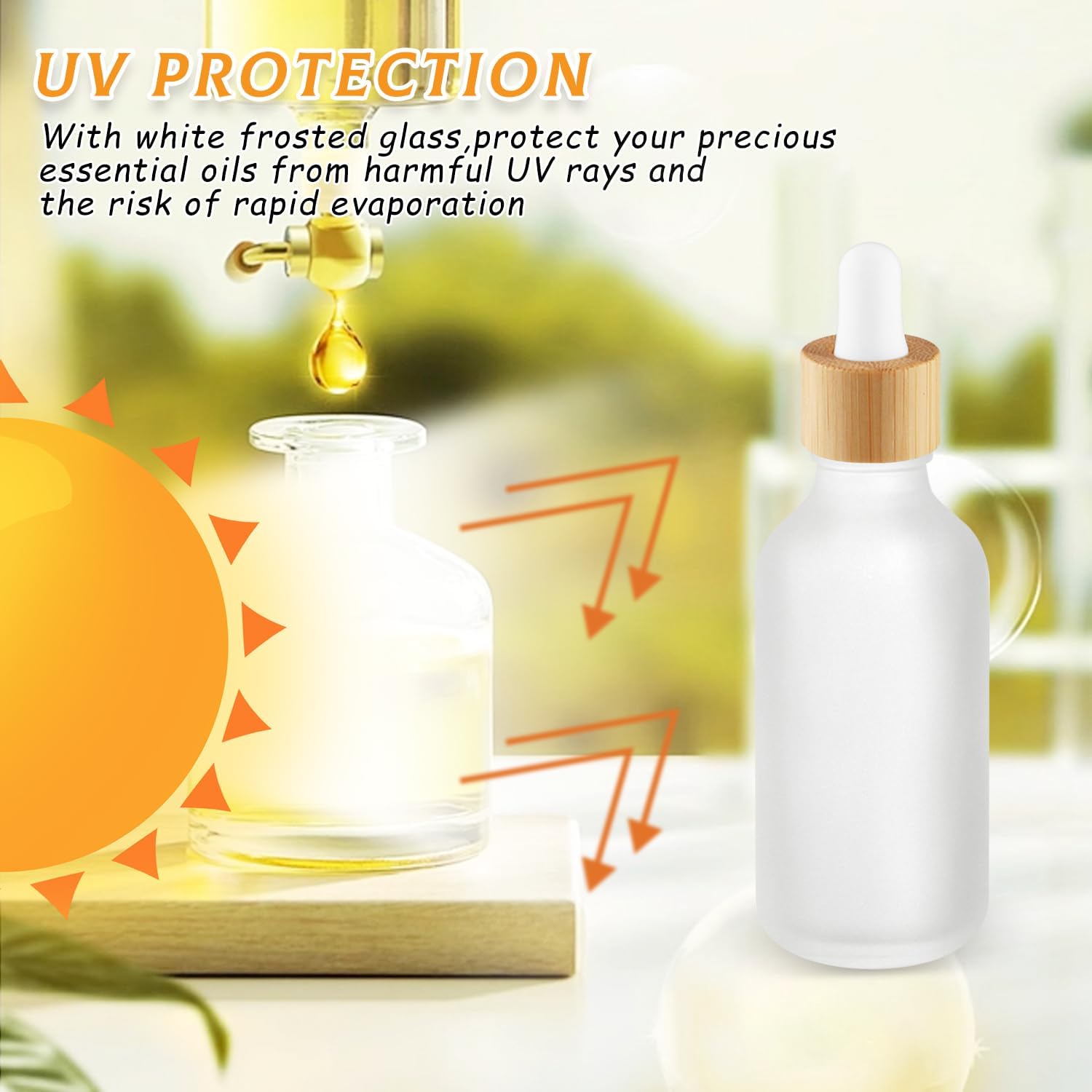 - White Frosted Glass: Made of corrosion-resistant glass effectively filter out harmful ultraviolet rays,maintain active stability in frosted glass while still being able to view. each with pure glass droppers,corrosion-resistant silicone tops and natural bamboo caps;keeping your oils fresher, longer;