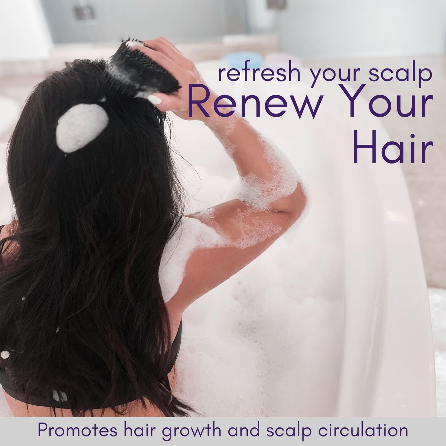 Avilana Silicone Body Scrubber - Food Grade & Lab Tested, Gentle Exfoliating Shower Brush for All Skin Types, Hygienic Quick-Dry Loofah Alternative (Black, Scalp-Silver)