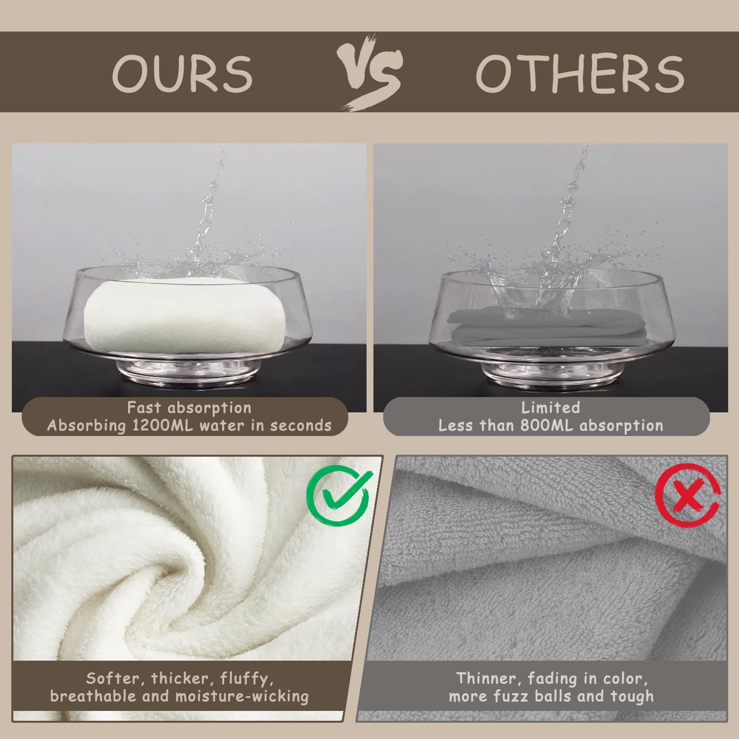 - Faster Hair Drying: Hair towels are made of absorbent microfiber fabric, quickly wick water from hair, reducing drying time and keeps the hair healthy. This the material is very absorbent. Which greatly makes hair drying faster, and thoroughly saving you time.