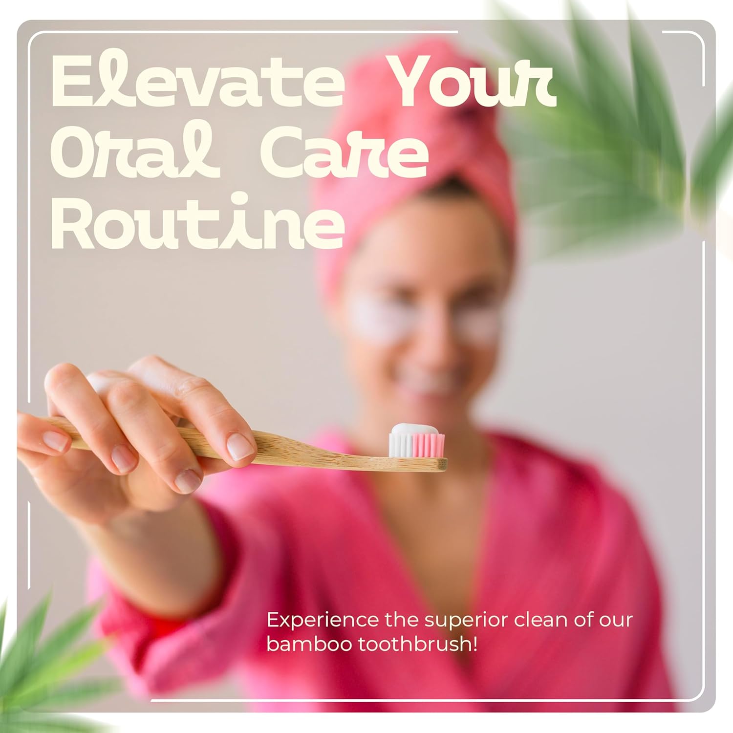 Bamboozle Eco-Friendly Toothbrush for Adults - Sustainable Bamboo Design, Biodegradable & Stylish Oral Care Solution (Pink, Pack of 3)