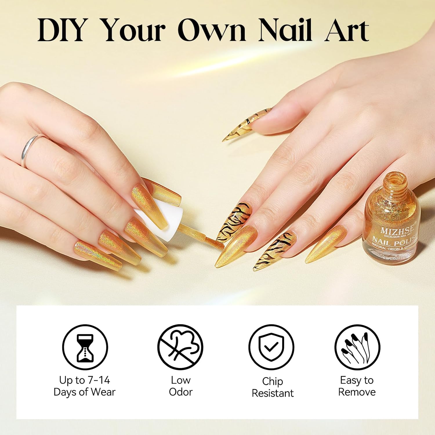 - Warm Tips: Before applying, please clean nails and ensure the oil-free on nails (The oil on the nails will greatly affect the effect of nail polish). Apply quick dry nail polish in thin layer for each coat, make it completely dry before applying the next, ensuring long-lasting, no drop-off results. The item is oil-based nail polish, suggest to apply MIZHSE's base and top coat to last longer and brighten nails. Avoid contact with water within 2 hours after application.