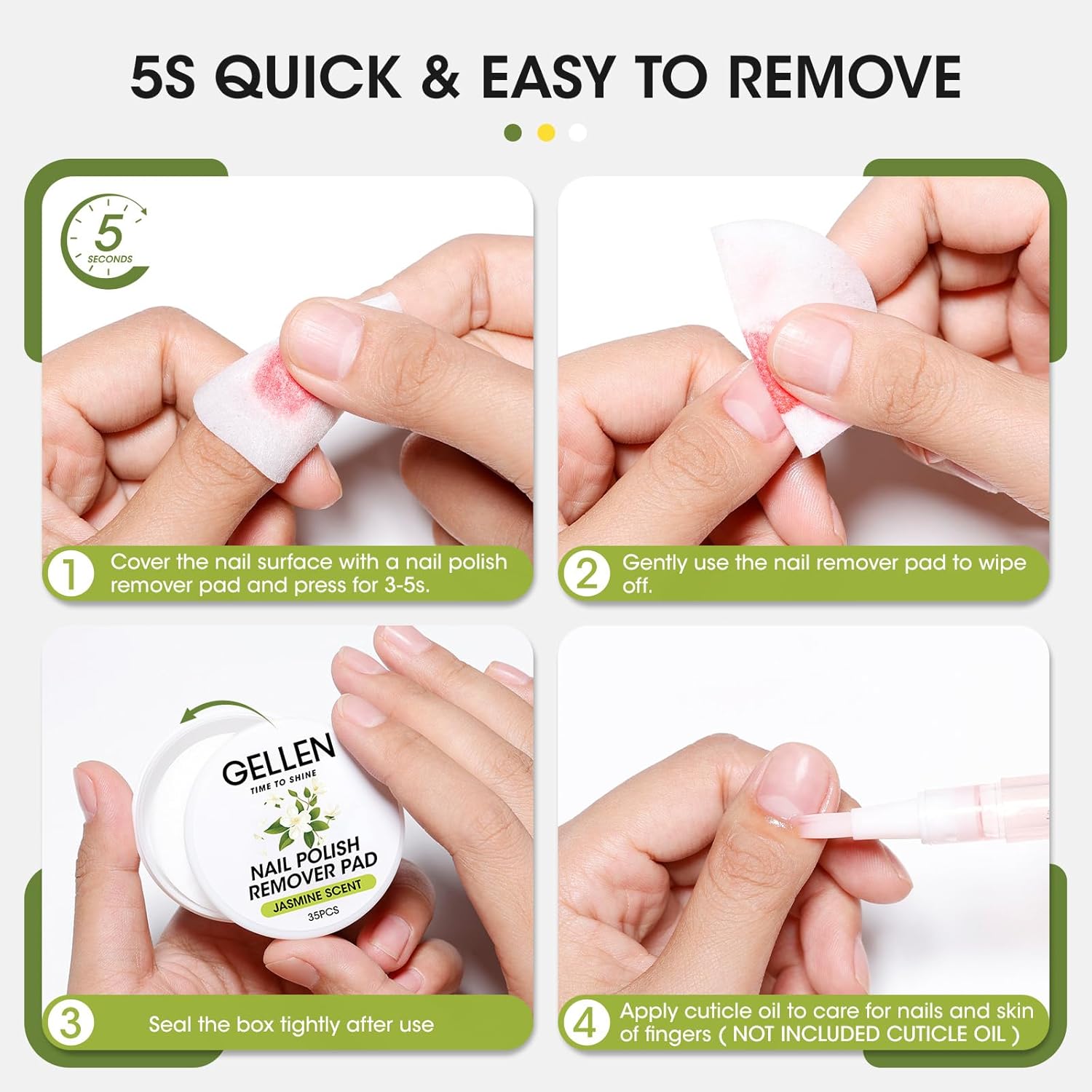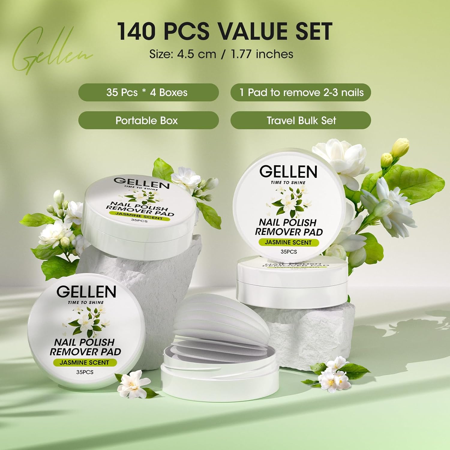 - PORTABLE NAIL POLISH REMOVER PADS: Gellen Portable nail polish remover pads help remove nail polish whenever and wherever you want. 4 portable boxes, 35pcs each box, easily and quickly remove regular nail polish anytime, nice travel bulks set