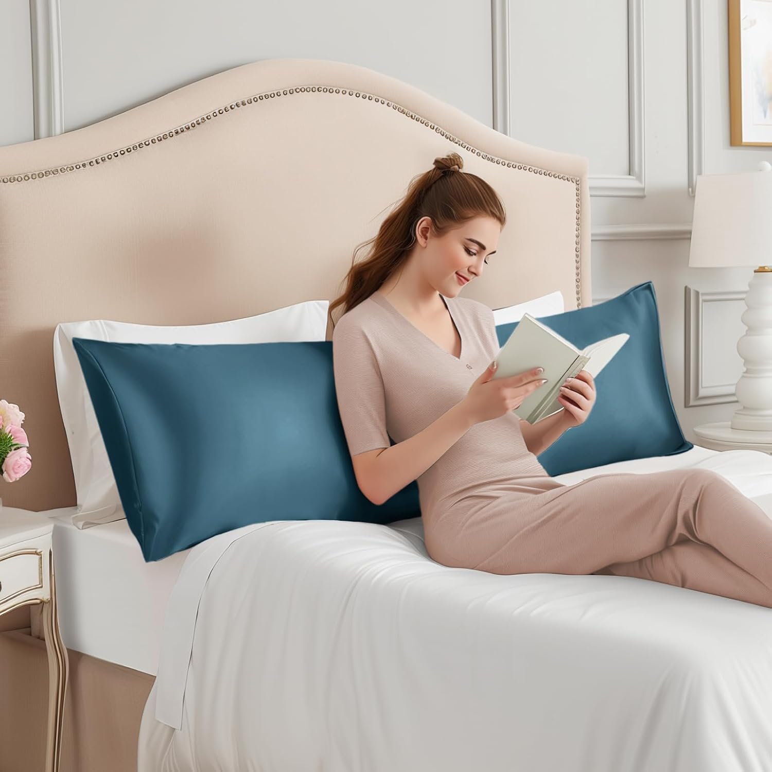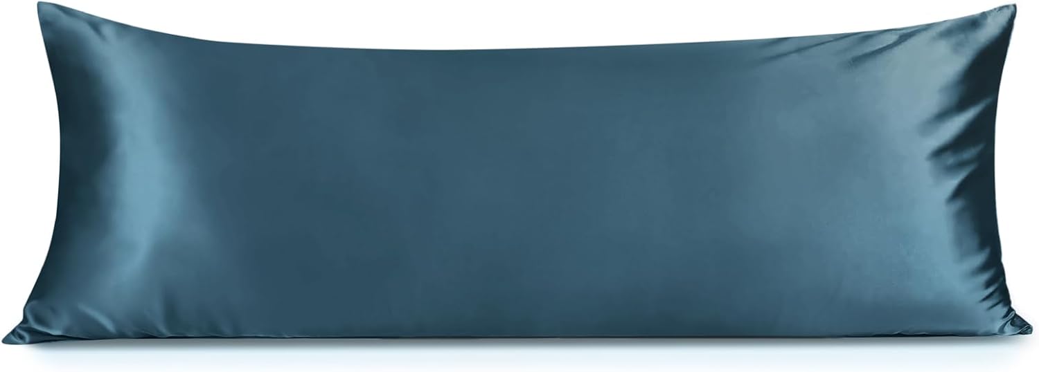 INFIIXSO Body Pillow Cover with Zipper, Luxury Mulberry Silk Body Pillow Case 20x54 Inches, Ultra Smooth and Soft Cooling Long Pillowcase, Gift for Women, Men(Bluesteel)