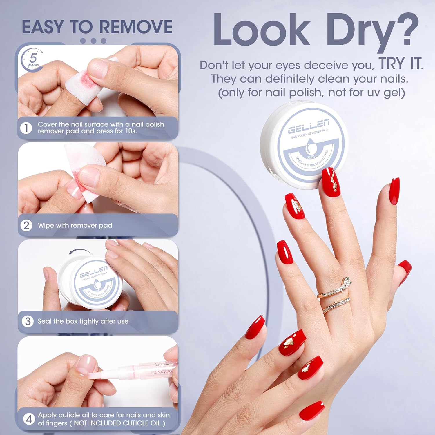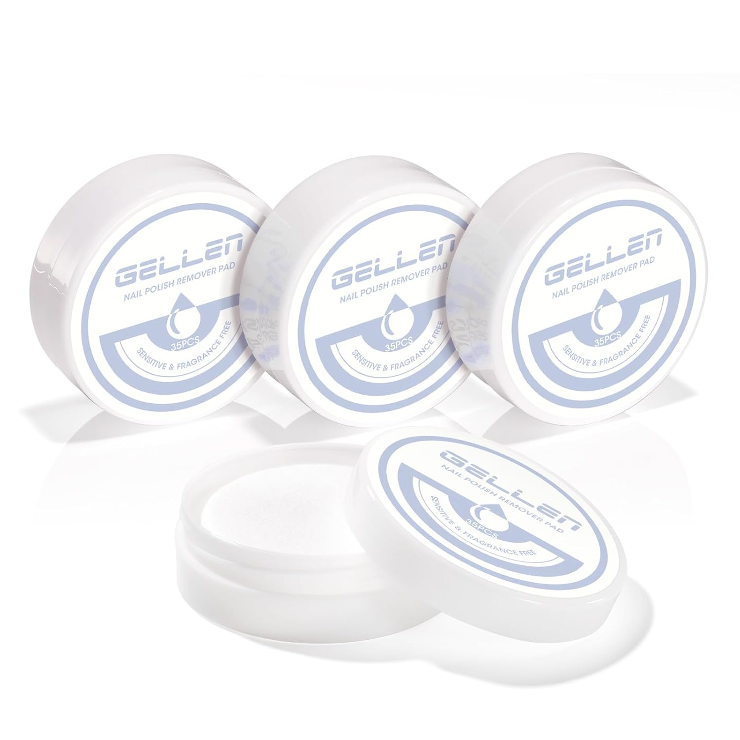 Gellen Non-Acetone Nail Polish Remover Pads, Fragrance-free Nail Polish Remover Wipes, Vitamin E & Jojoba Oil Formula, 140pcs Travel Size Nails Wets Bulk Set, No Leakage, Long-lasting For 5+ Months