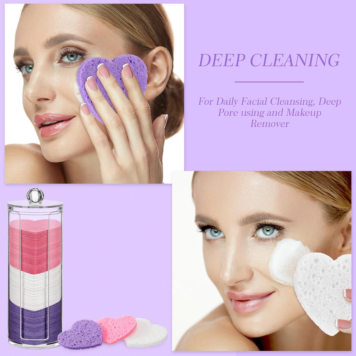- Sufficient Quantity and Proper Size: you will receive 120 pieces of heart shape compressed facial sponges with 1 piece of acrylic storage container, each sponge pad measures approx 6.3 cm/ 2.48 inches in width, and can become 0.8 cm/ 0.32 inch thick after absorbing water, and the container is about 7 cm/ 2.75 inch in diameter and 20 cm/ 7.87 inch in height; Sufficient to meet your daily facial cleaning use and placement needs, you can also share them with your friends and family members
