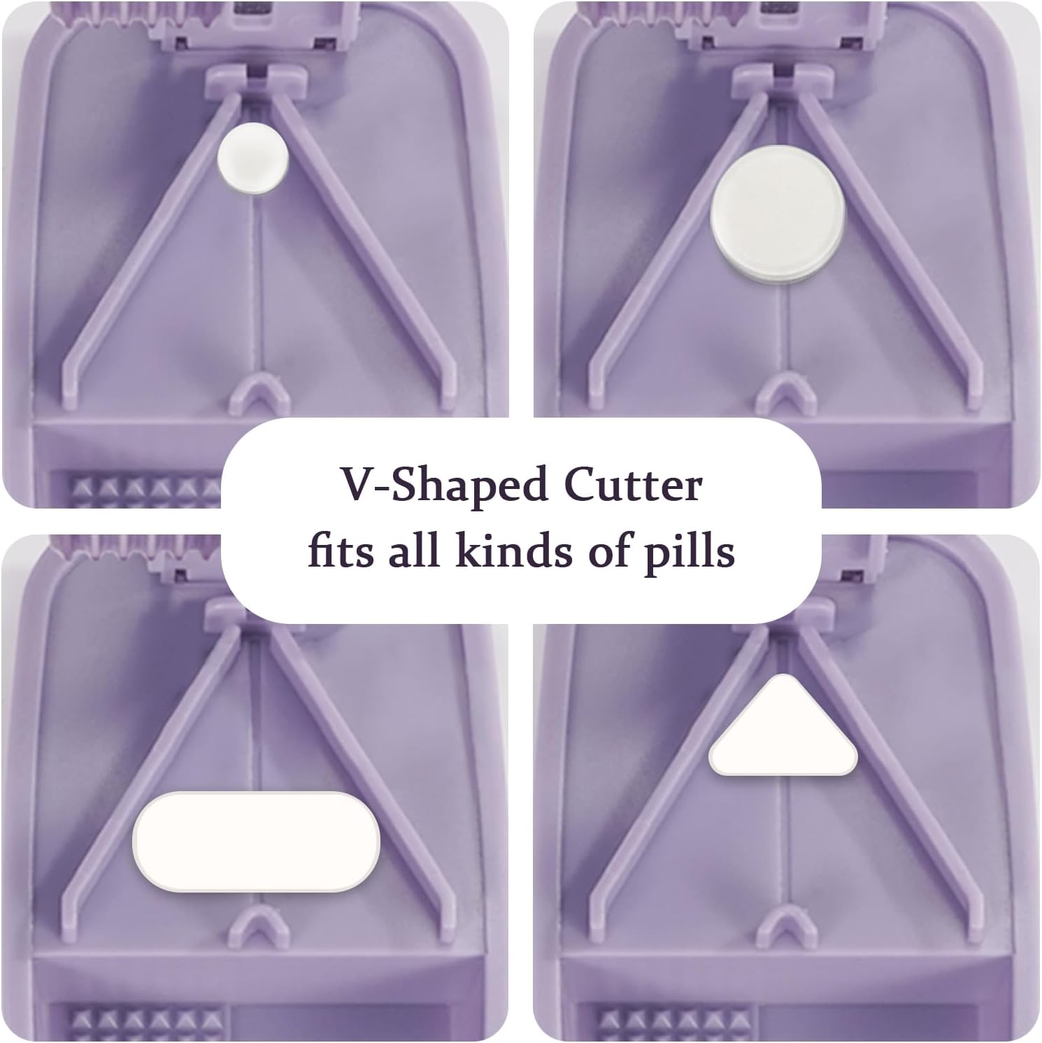 - 【Cutting and Crushing 2-in-1 Design】The pill cutter's V-groove cuts pills of all sizes. In addition it can realize a simple operation of crushing the pill into a small pellet state. Convenient for those who need to crush their pills, but are not looking for the ultimate fine powder. In fact, the finer the powder is ground, the more likely it will be wasted.
