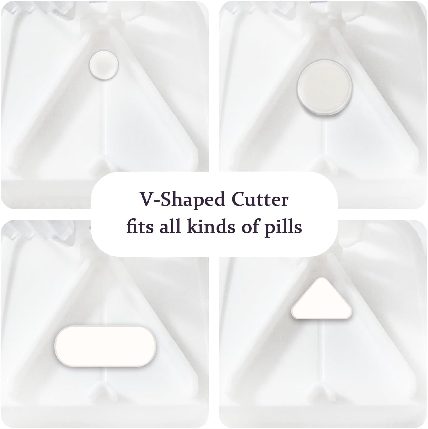 - 【Cutting and Crushing 2-in-1 Design】The pill cutter's V-groove cuts pills of all sizes. In addition it can realize a simple operation of crushing the pill into a small pellet state. Convenient for those who need to crush their pills, but are not looking for the ultimate fine powder. In fact, the finer the powder is ground, the more likely it will be wasted.