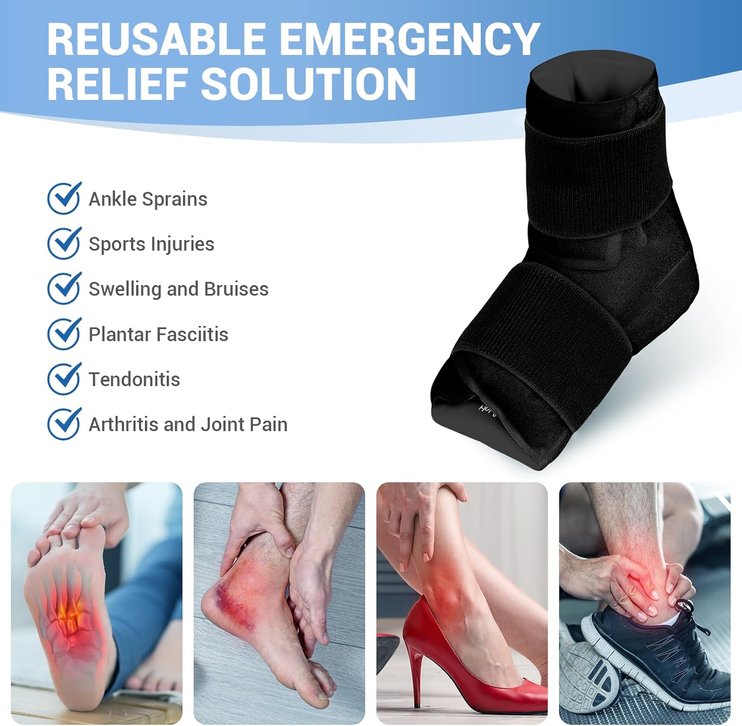 - 【Quick Pain Relief】The reusable ankle ice pack effectively alleviates pain from swelling, sprains, bruises, inflammation, and arthritis. It quickly reduces discomfort from conditions like plantar fasciitis, Achilles tendonitis, fibula pain, heel spurs, sprained ankles, and after sugery recovery.