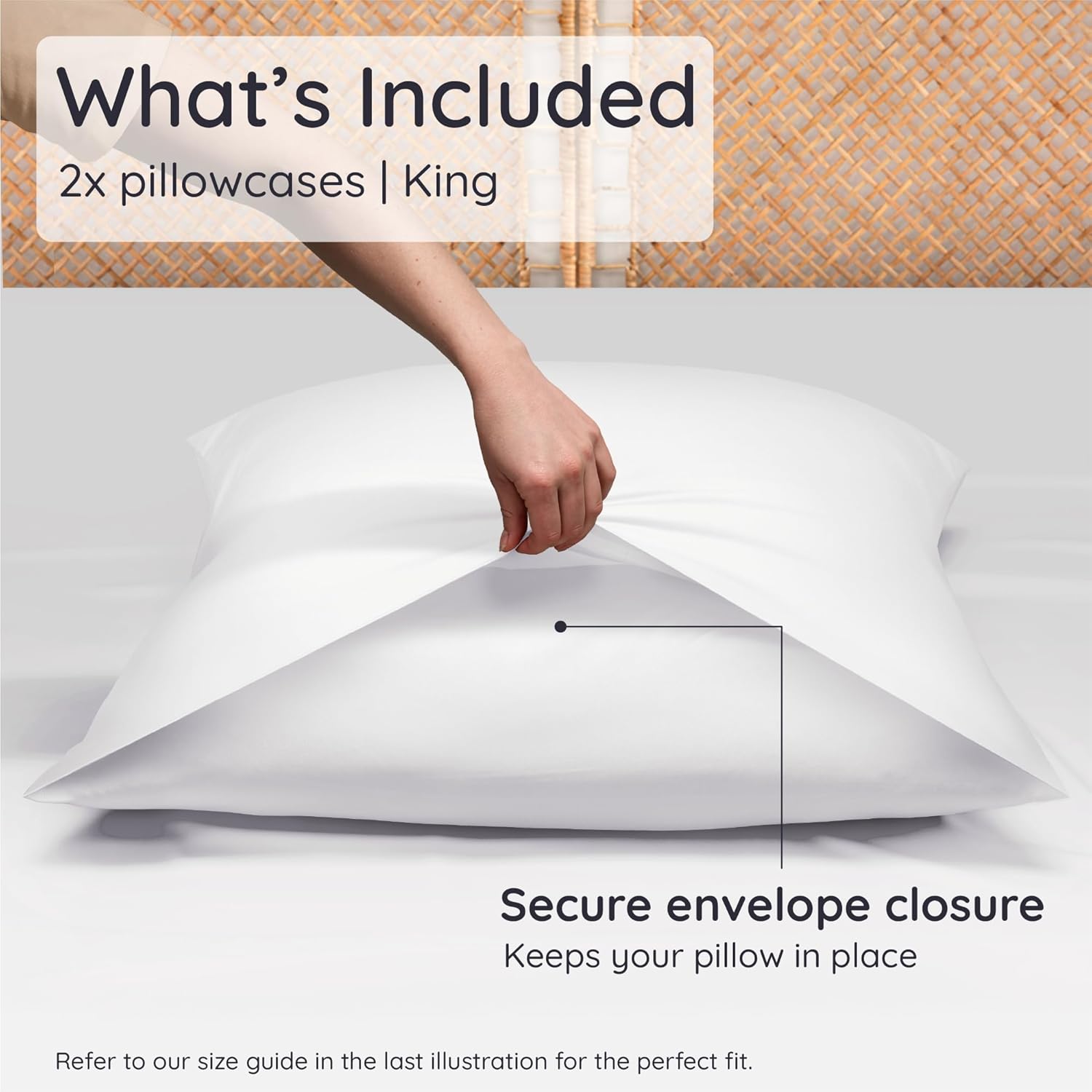 Bambaw 100% Viscose Derived from Bamboo King Pillowcases – Set of 2 Cooling Pillow Cases with Envelope Closure, White King Pillow Cases Set of 2, Breathable Acne Pillow Case(White)