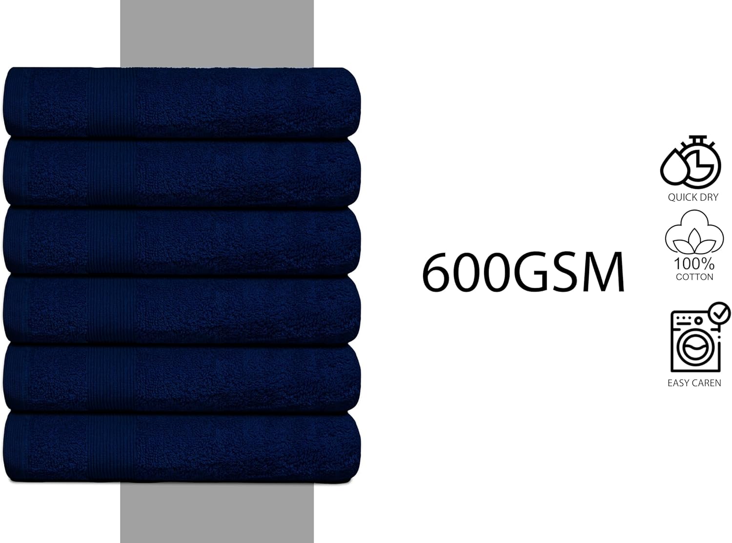 Premium Hand Towels Pack of 6 (16" x 30”) 100% Combed Ring Spun Cotton | Highly Absorbent Hand Towels Set | Ultra Soft for Home, Gym & Spa (Navy Blue)