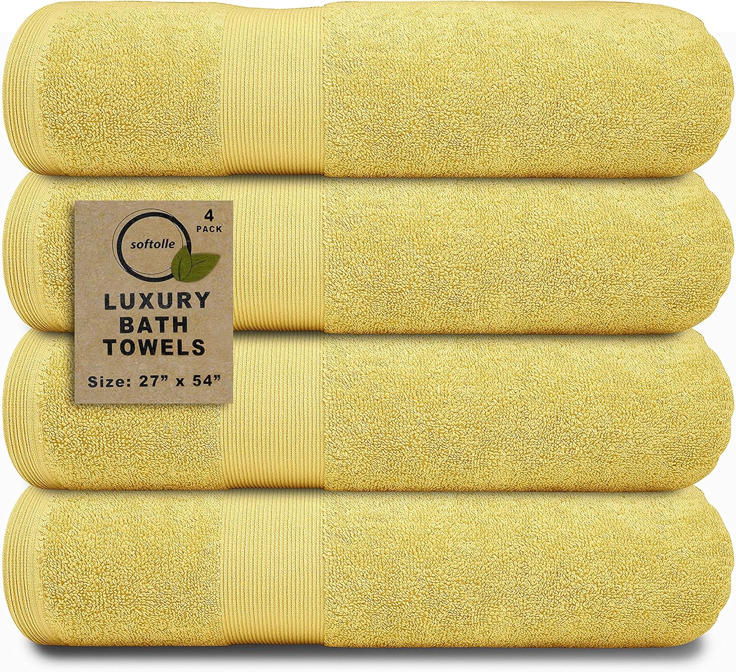 Softolle Luxury Bath Towels Set of 4 (27” x 54”) | Towels for Bathroom | Super Soft | Highly Absorbent Towels for Home, Spa, Gym (Yellow)