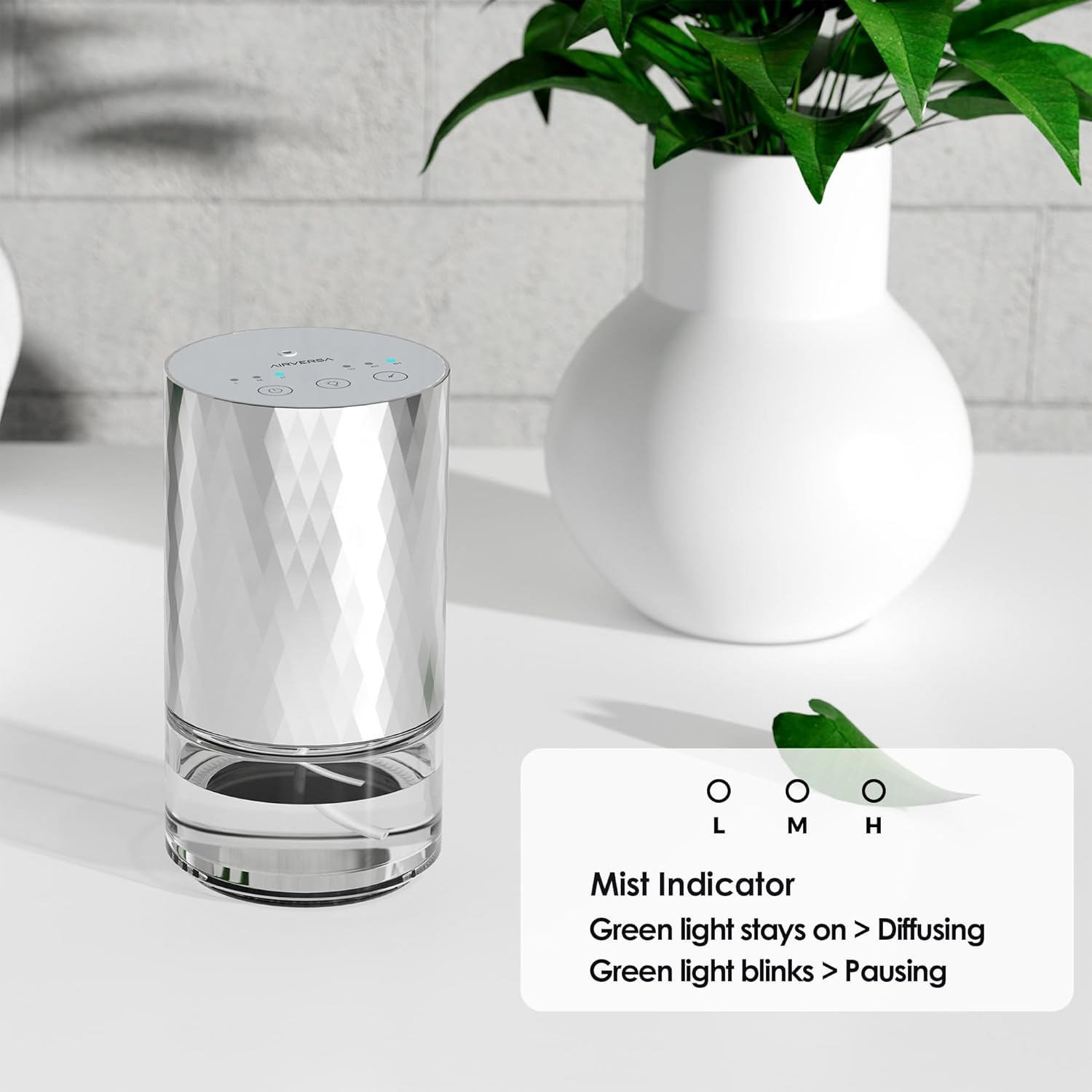 Airversa Waterless Diffuser Essential Oil 100ml Capacity Scent Air Machine for Home Aromatherapy Premium Metal Nebulizer Battery Operated 3 Mist Settings Timers Color Light AN5(Silver)