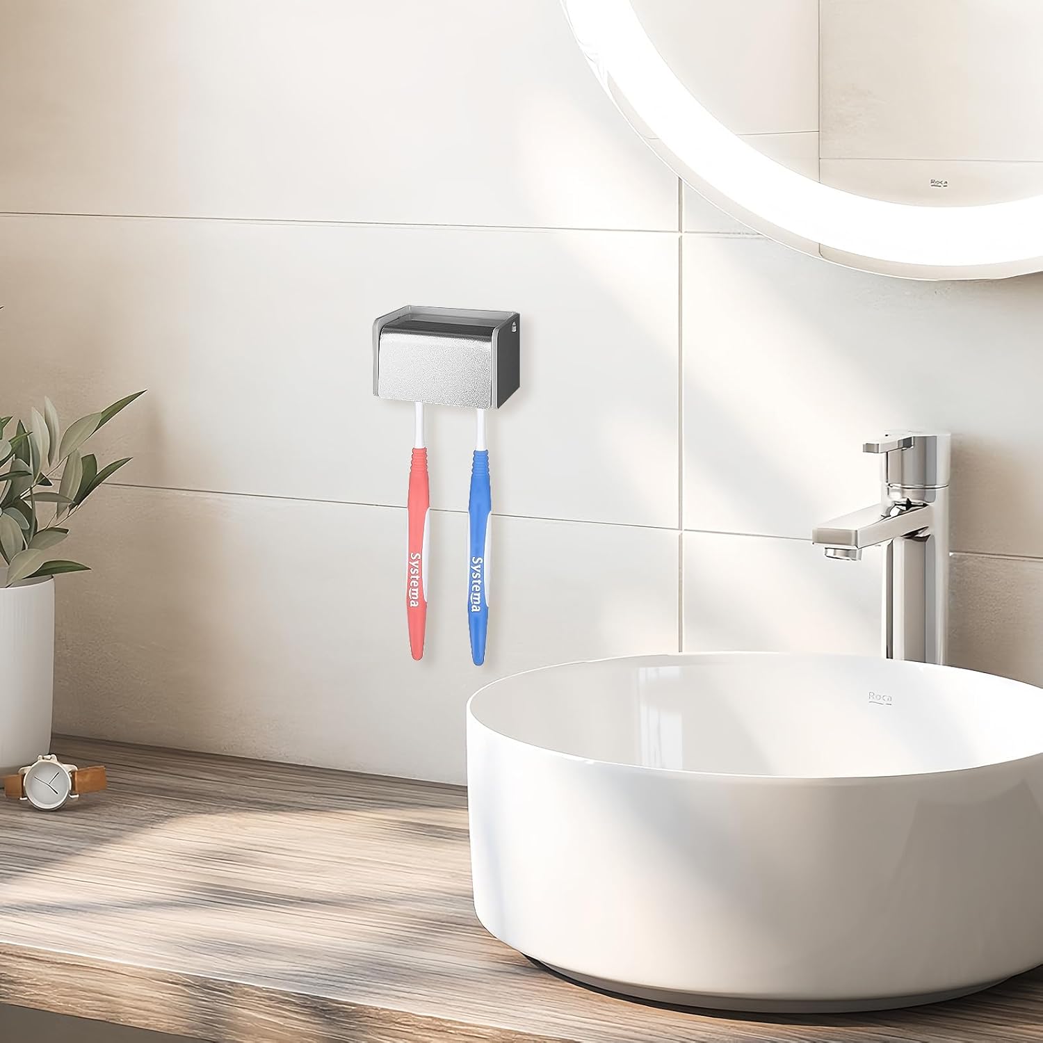 - Self adhesive toothbrush holder is easy to install, self adhesive, no drilling.