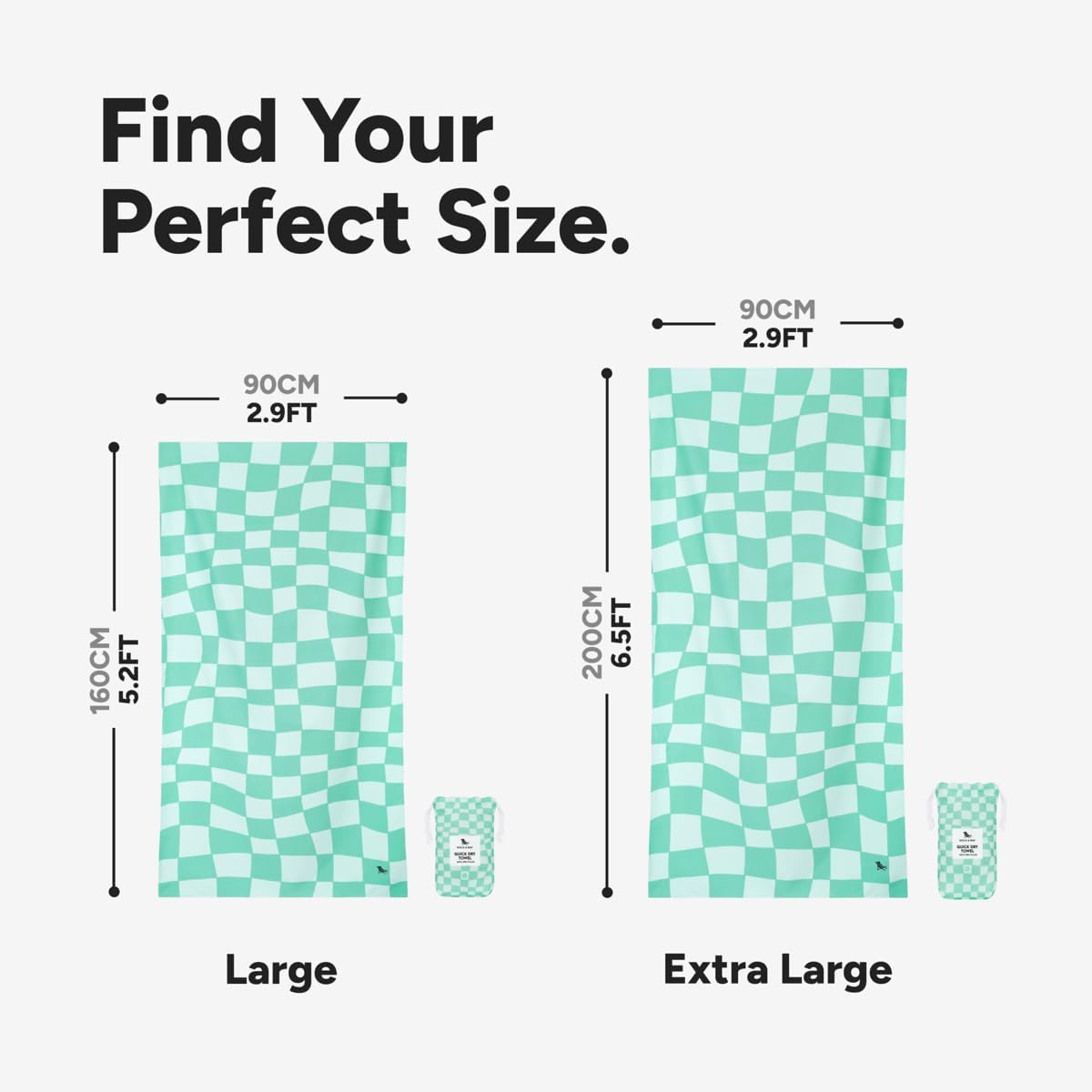 Dock & Bay Beach Towel - Quick Dry, Sand Free - Compact, Lightweight - 100% Recycled - Includes Bag - Check Mate - Large (160x90cm, 63x35)